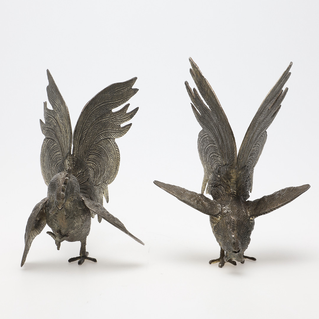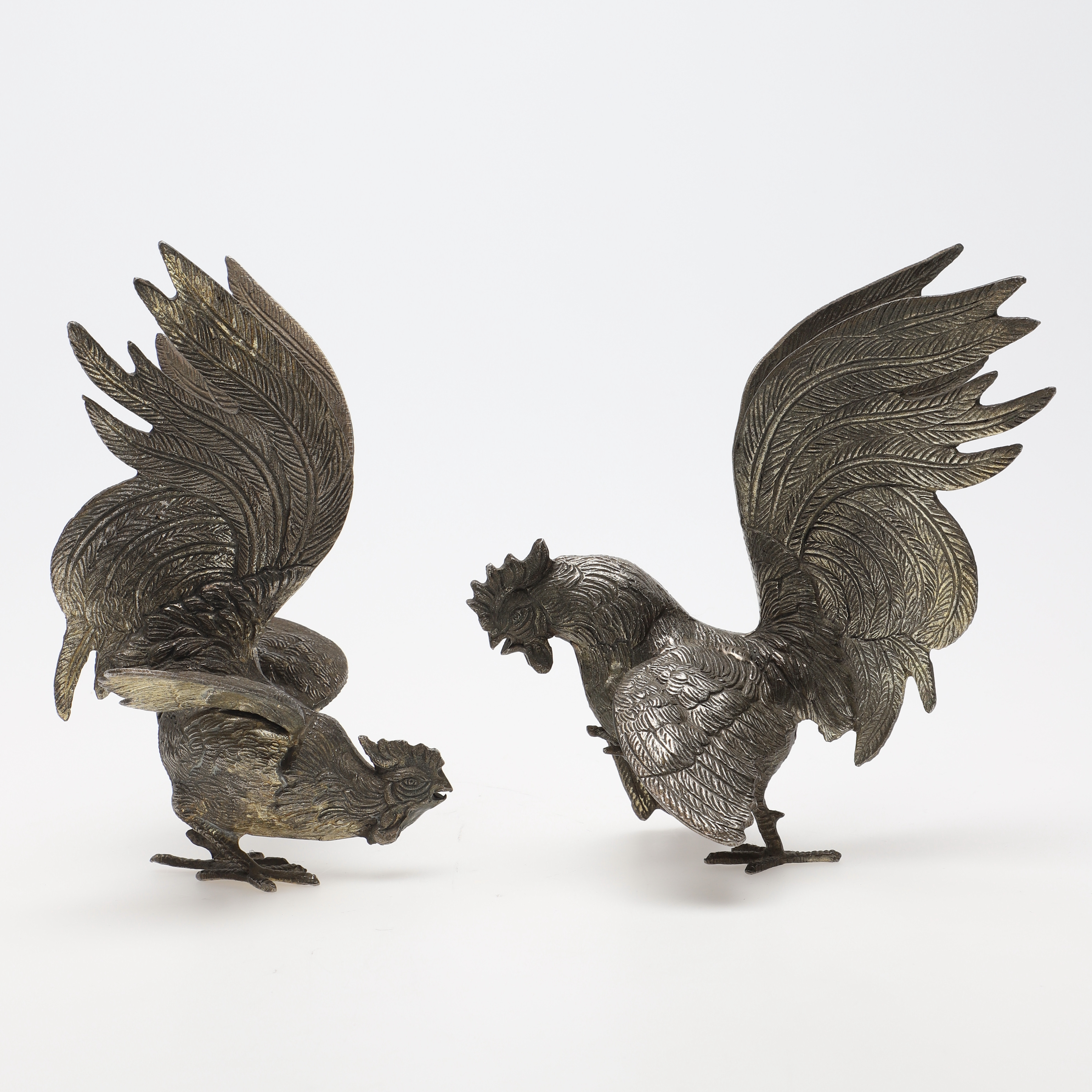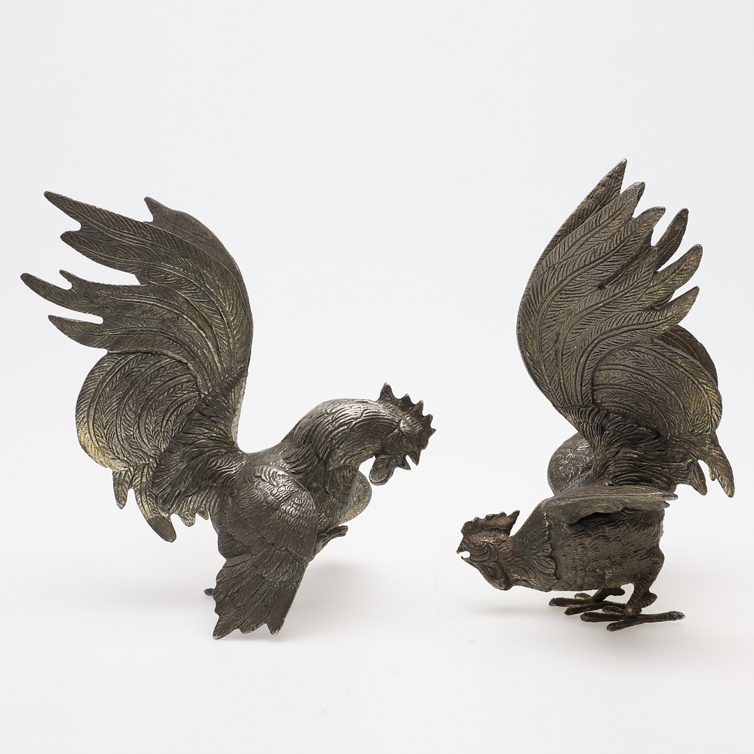 2369463. TISCHDEKORATION, 2 Stück, Kampfhähne, Metall.