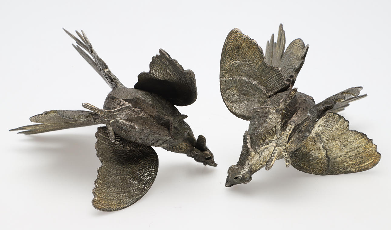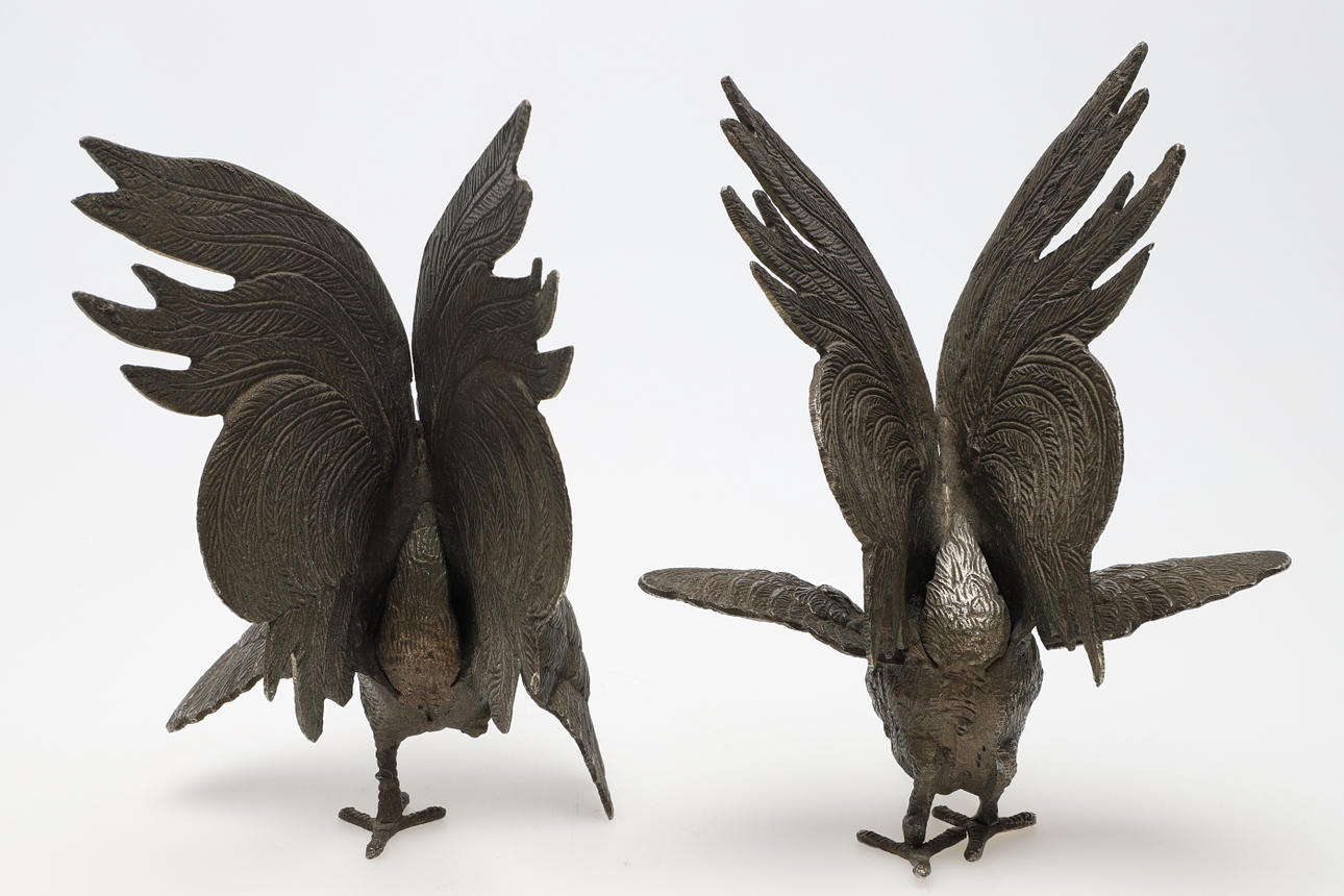 2369463. TISCHDEKORATION, 2 Stück, Kampfhähne, Metall.
