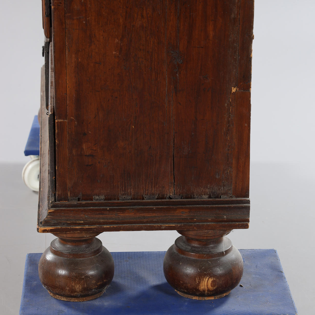 einige Ergänzungen, Seiten und Rückseite, nicht originaler Schlüssel, ein Ring für die Box fehlt, Verschleiß, später repariert.