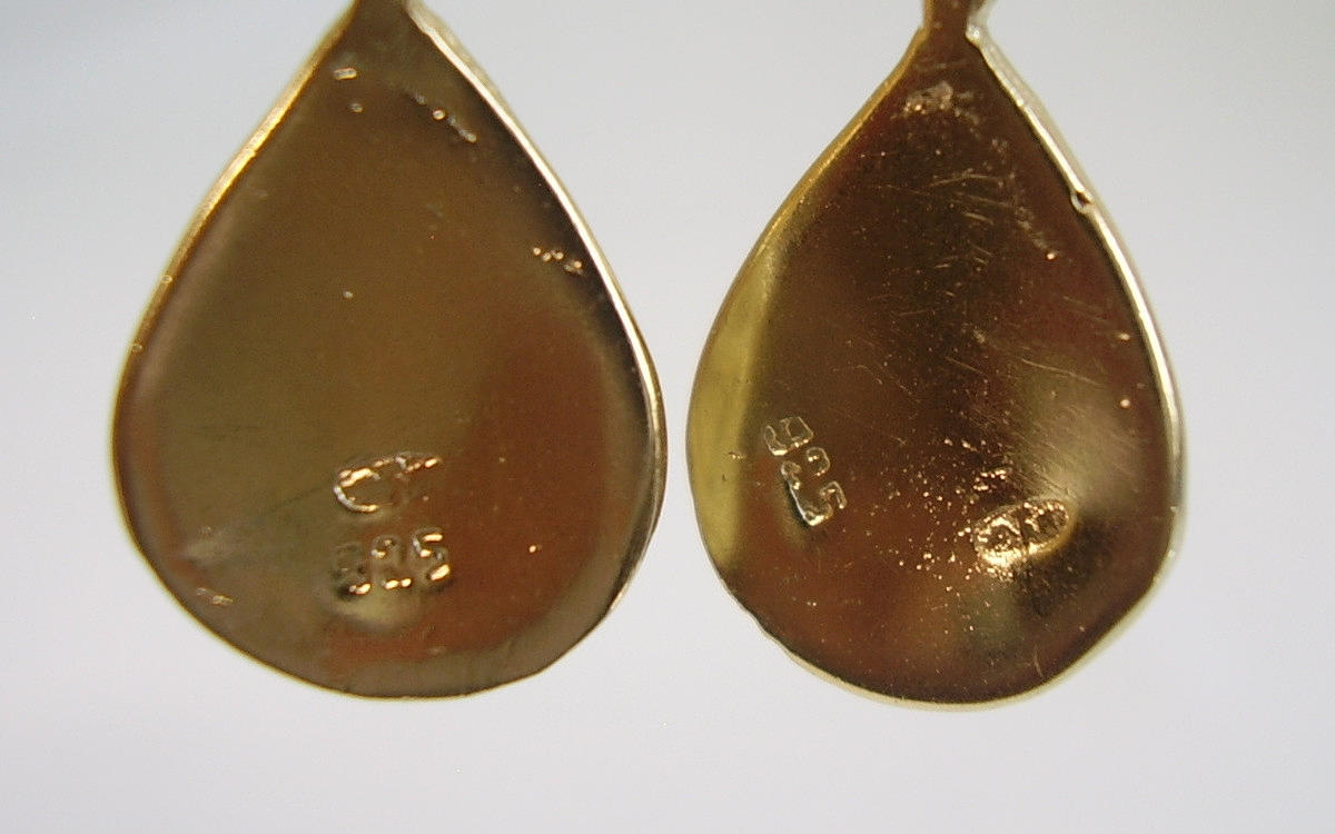 Die Ohrringe sind in Silber 925 gearbeitet und punziert, dazu sind sie in Gelbgold 14 Karat vergoldet.