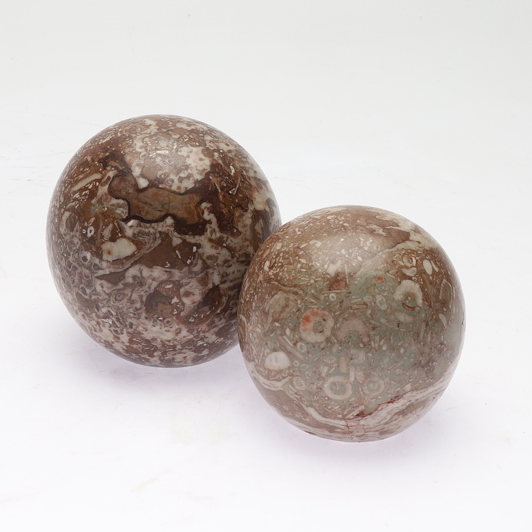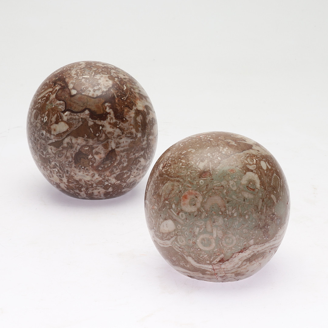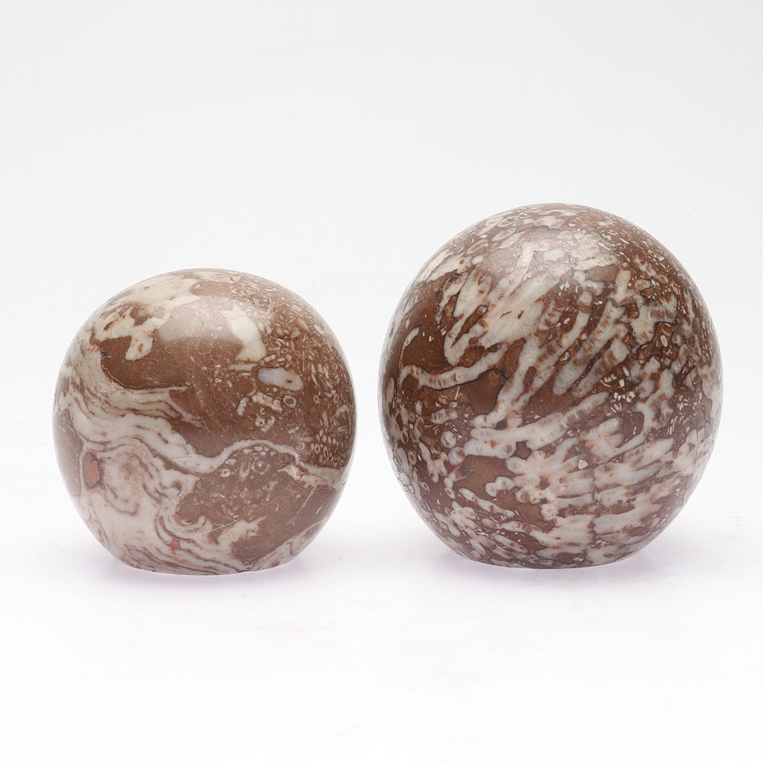 2378148. DEKORATIONSKUGELN, 2 Stück, Stein, 1900er Jahre.