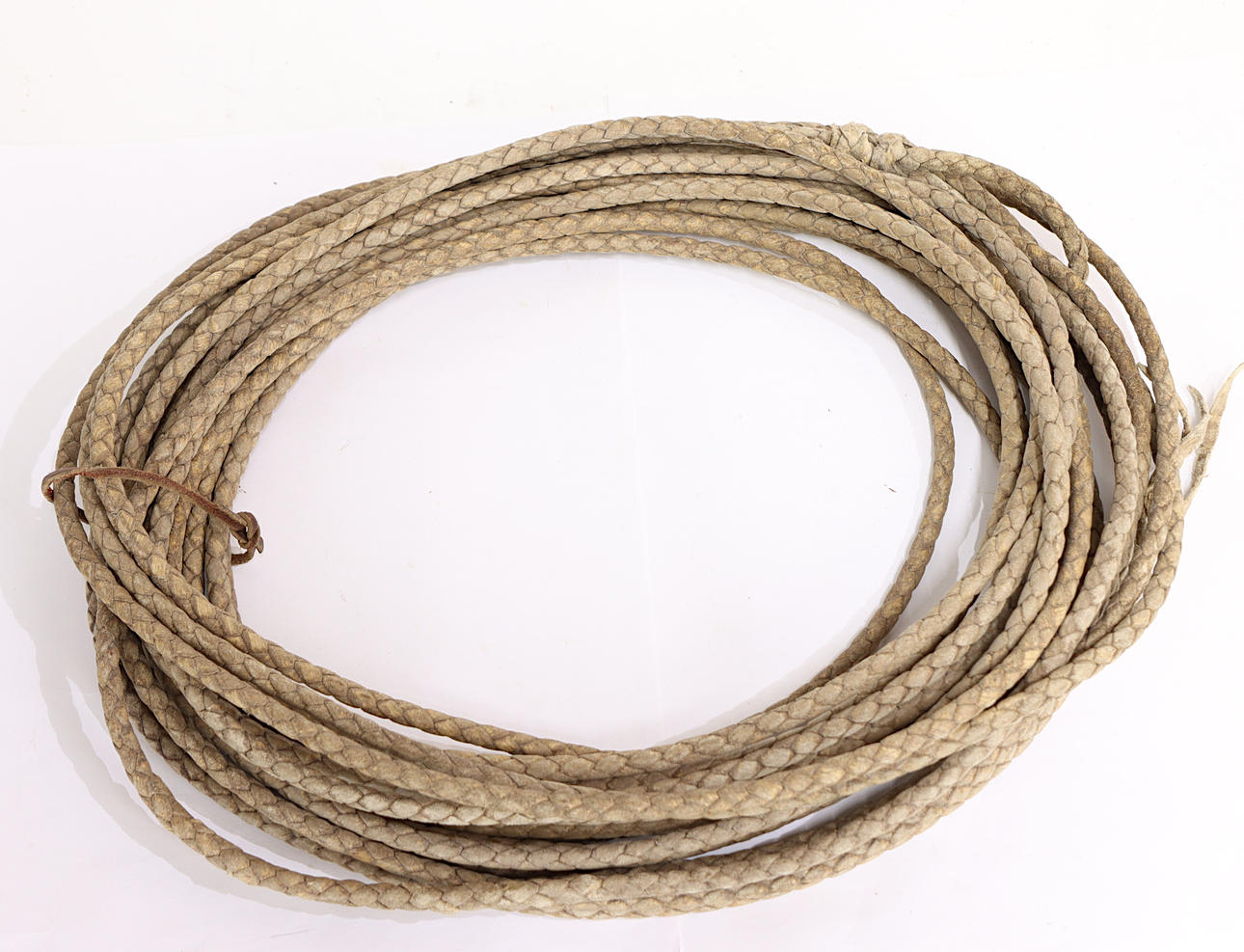 Geflochtenes Leder-Lasso (Riatta), Lederschuh-Leder-Teleskopbecher, Feldflasche.