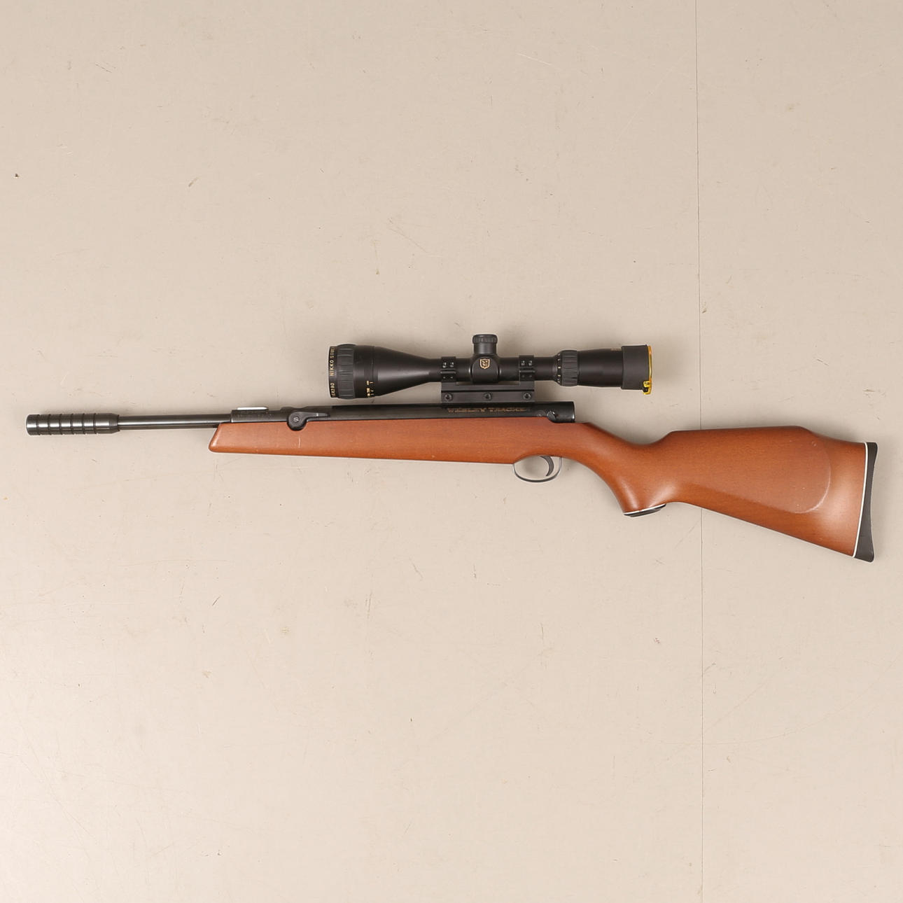 Webley Tracker Luftgewehr, hergestellt 1987-1989 in England. Mit Zielfernrohr Nikko Stirling mit Parallaxenausgleich. Kaliber 5,5 mm.