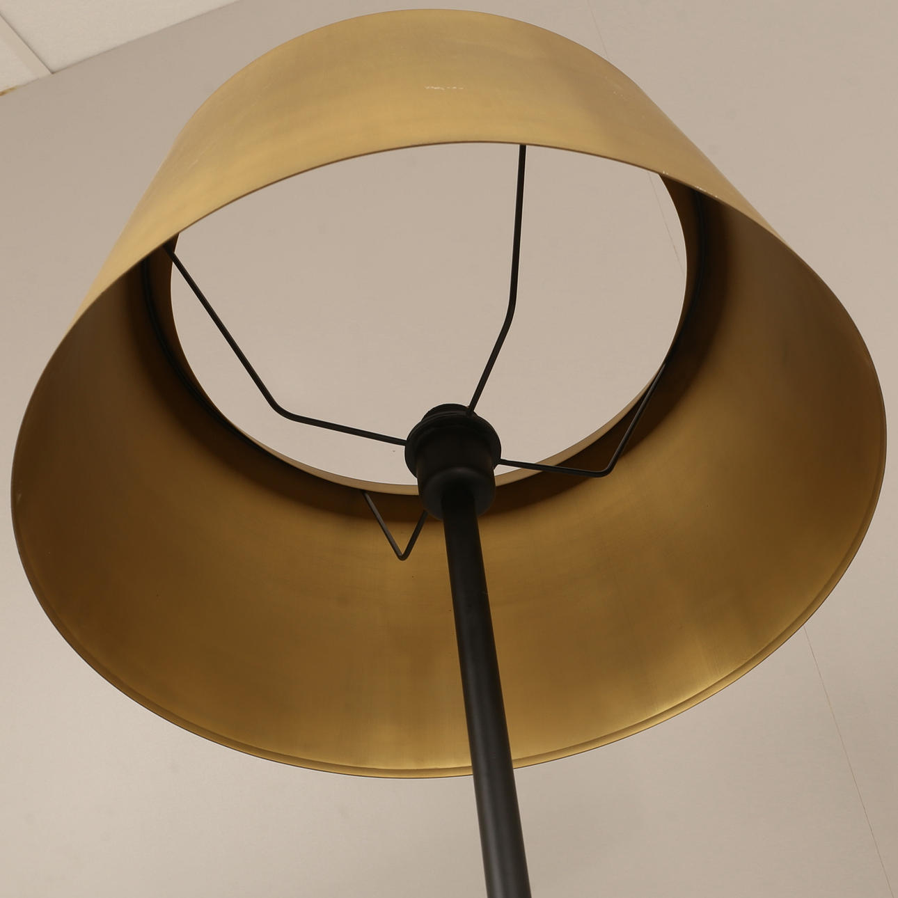 Fuß aus Gusseisen und Schirm aus gebürstetem Metall. Gesamthöhe 162 cm, Schirmdurchmesser 50 cm.