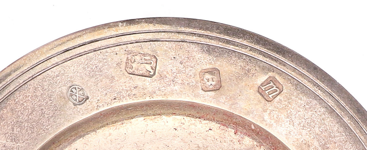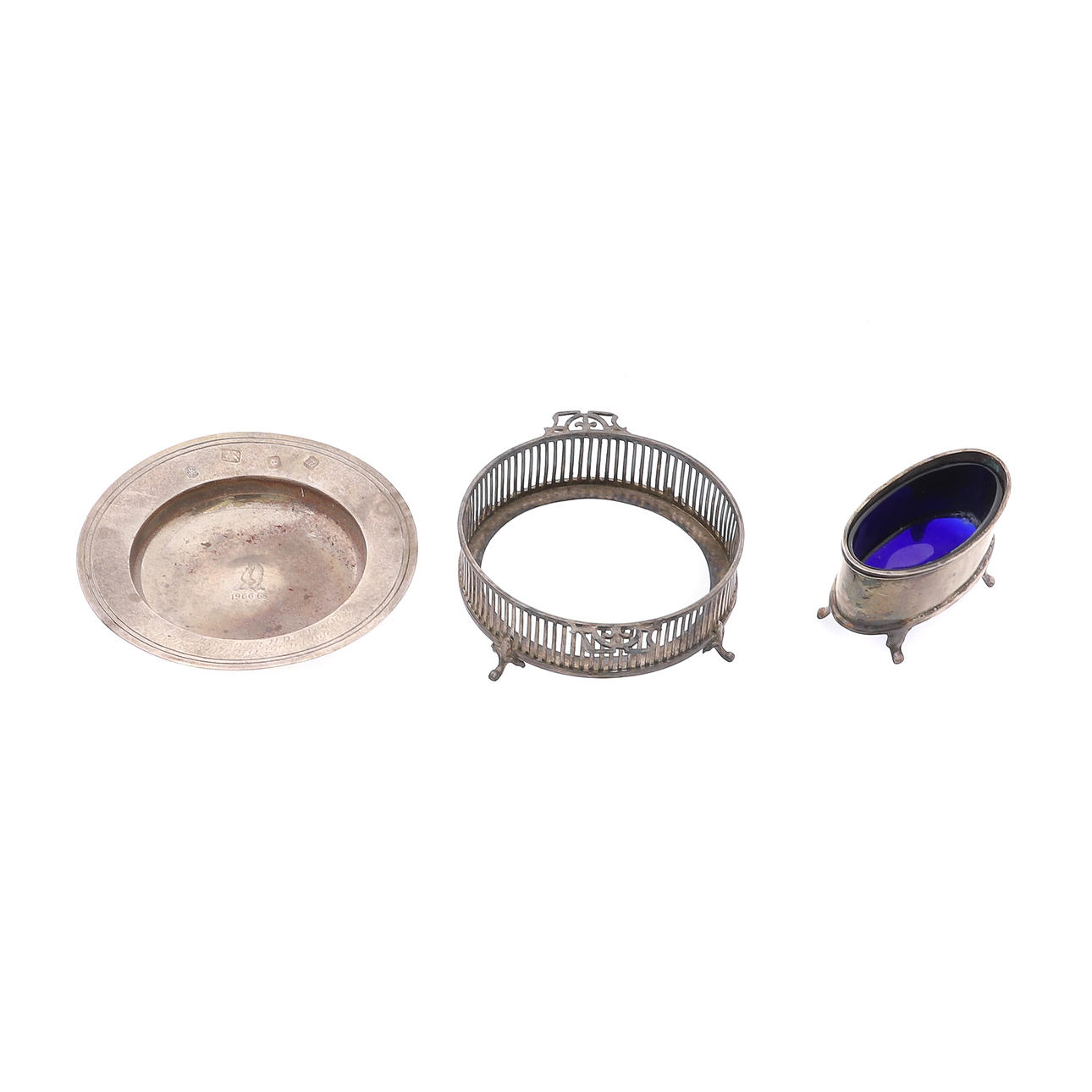 ein silberner Teller von George V., Birmingham 1910, mit durchbrochenen Seiten, 9 cm Durchmesser, und ein silberner Salzstreuer im Stil von George III ) Das Vermögen eines Verstorbenen, das im Auftrag von Testamentsvollstreckern verkauft wird.