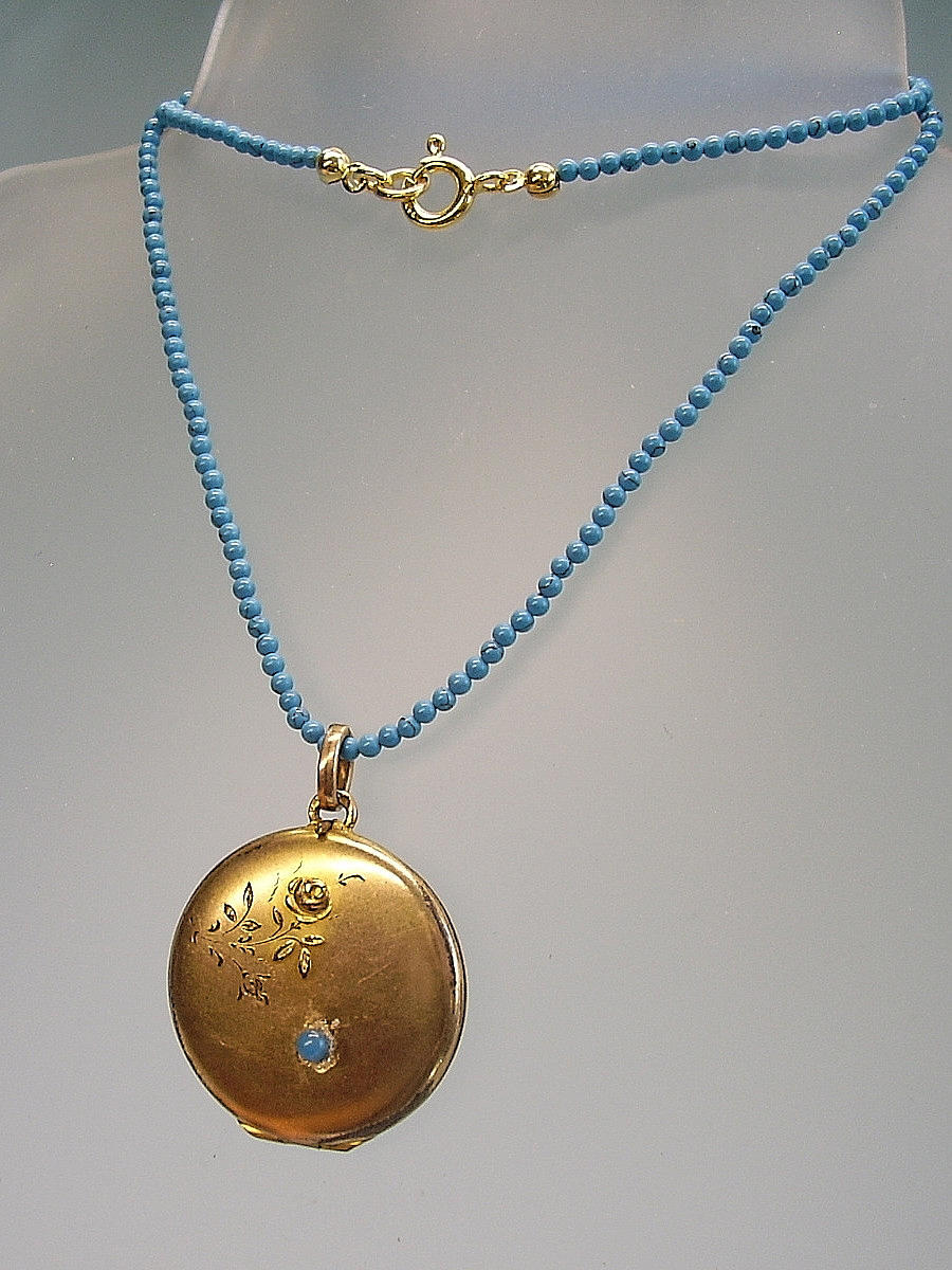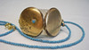 Der Anhänger wird an einer feinen Türkiskette getragen.