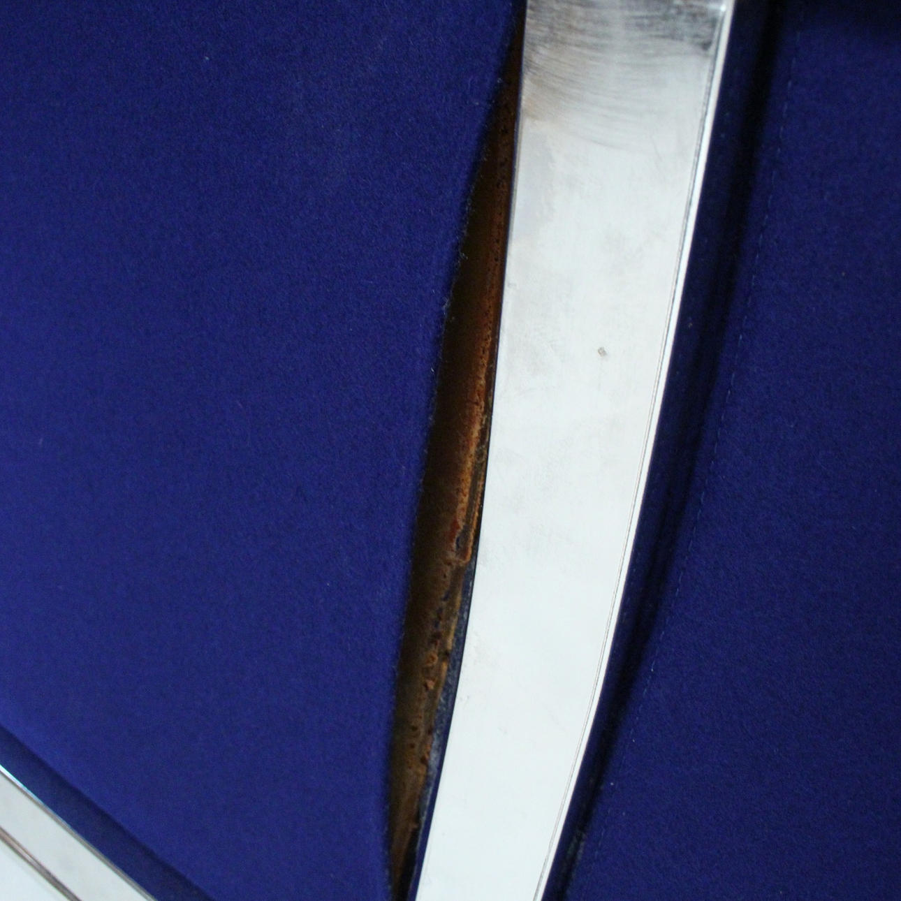 Material: verchromtes Stahlrohr/draht, Wollfilzmischgewebe in Ultramarin, Schaumstoff