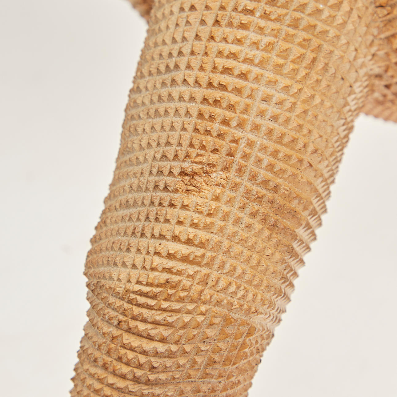 Altersgemäße Reibespuren, partielle Befleckungen und Kratzer im Holz sowie zwei Krallen bestoßen.