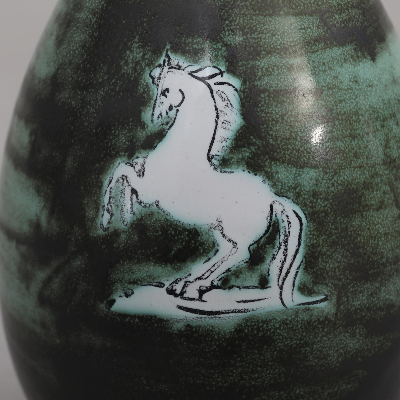 Keramikvase Hallstatt, Österreich, Motiv mit sich aufbäumendem Pferd Höhe: 17,5 cm, Durchmesser: 10 cm.