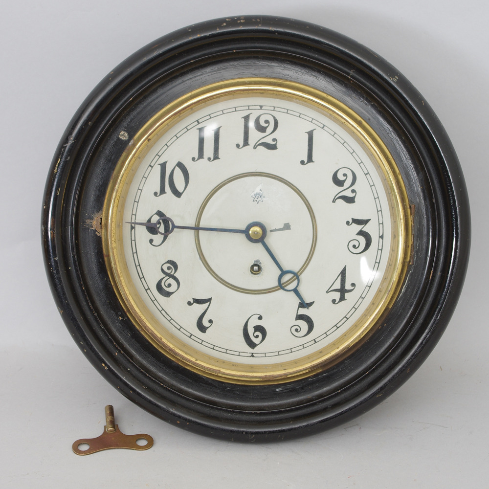 241909. STATION Clock, Junghans, Messing / schwarz lackiertes Holz.