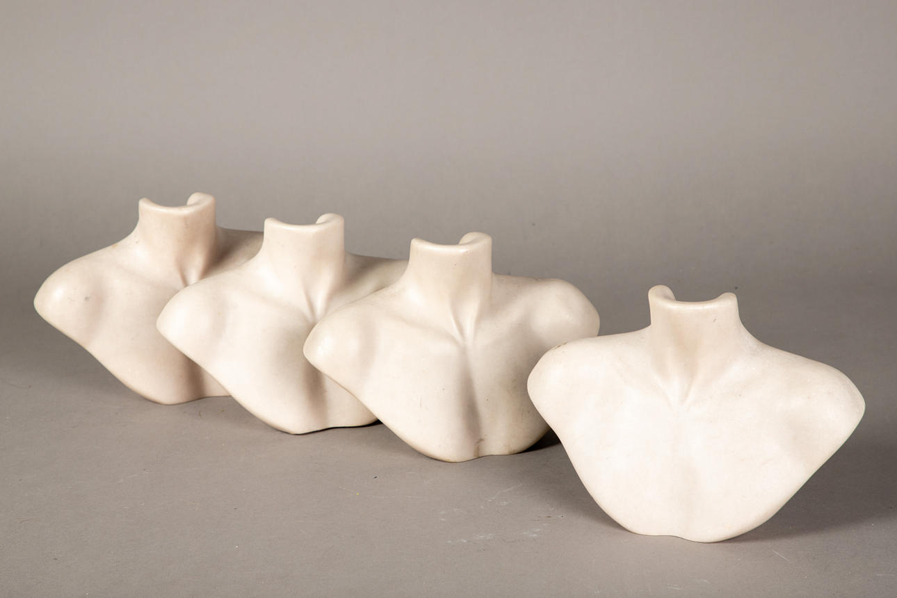 4 dekorative Schmuckbüsten / Schmuckhalter für Colliers aus Speckstein.