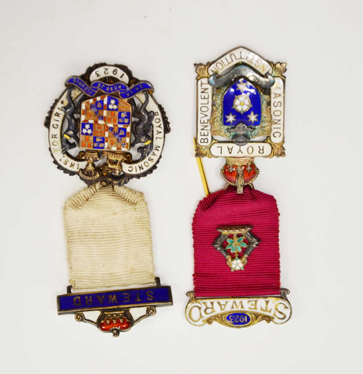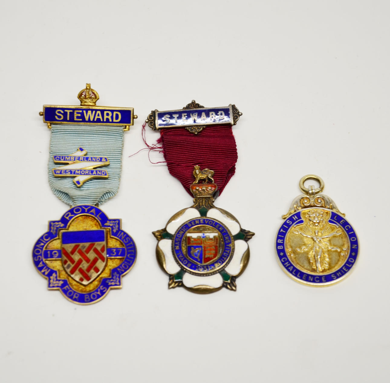 Eine Gruppe gemischter silberner und emaillierter Freimaurermedaillen.