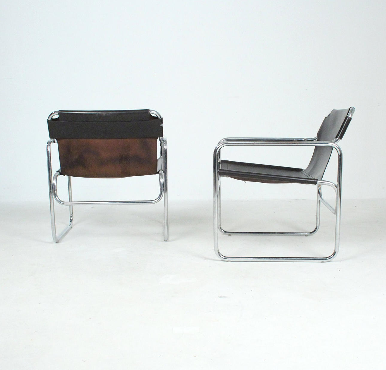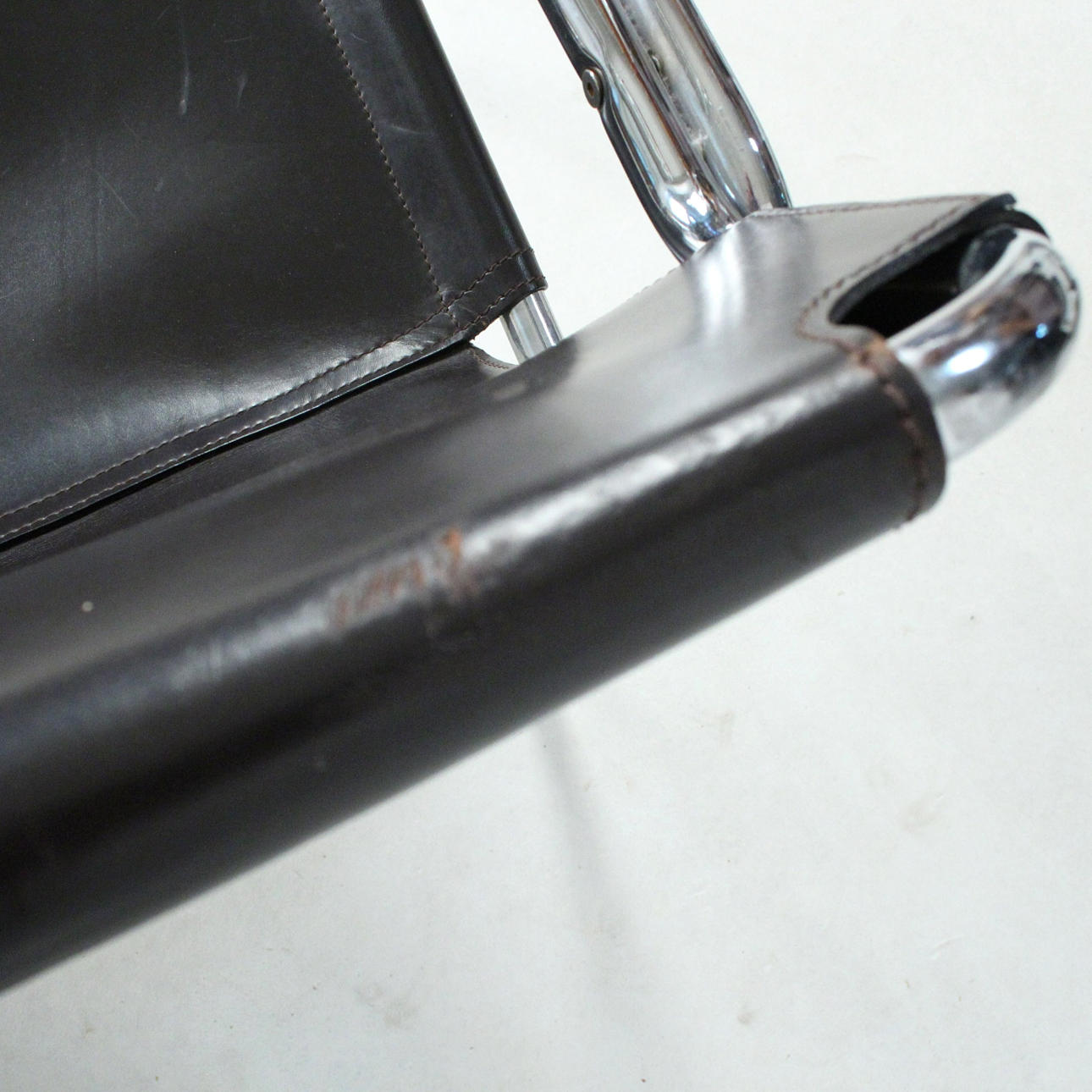 Material: verchromtes Stahlrohr, Dickleder.