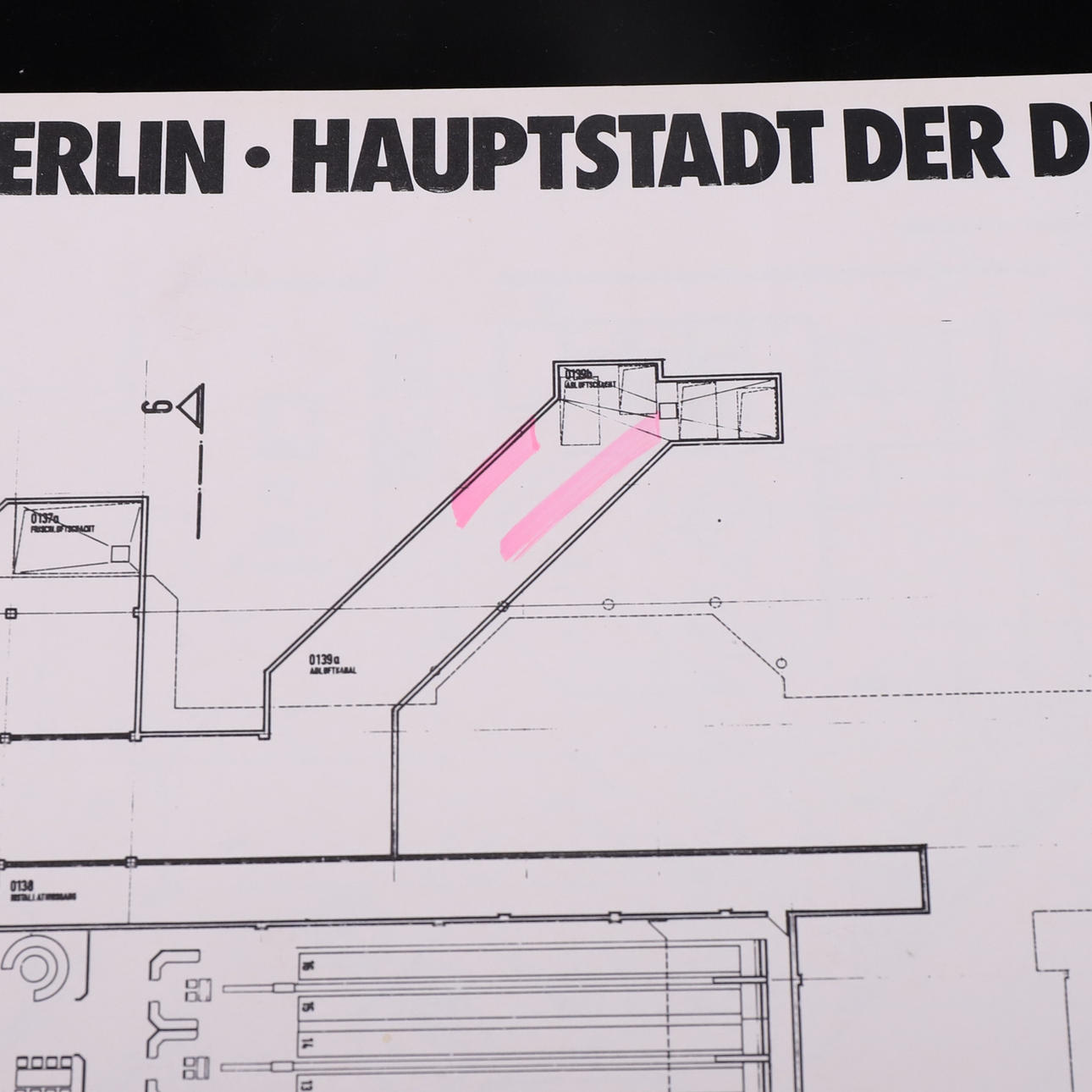 Stadtplan, Aufriss und Planskizzen, die 1978 vor dem Bau des Komplexes erstellt wurden.
