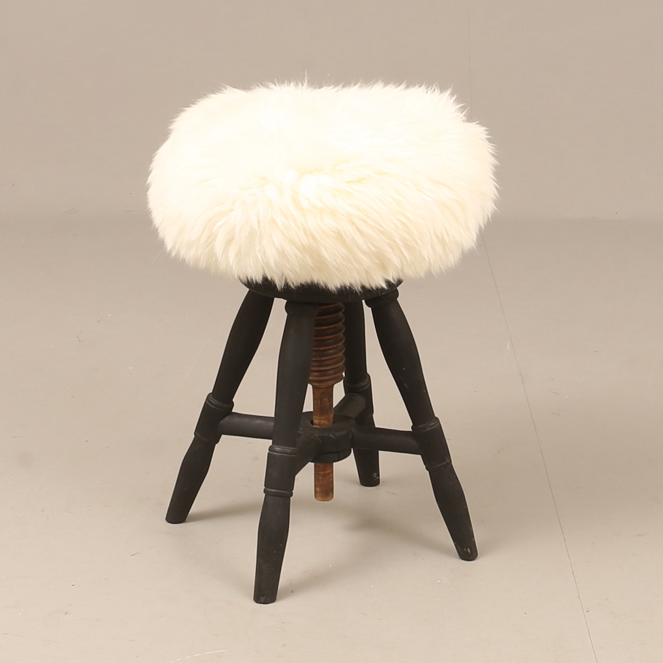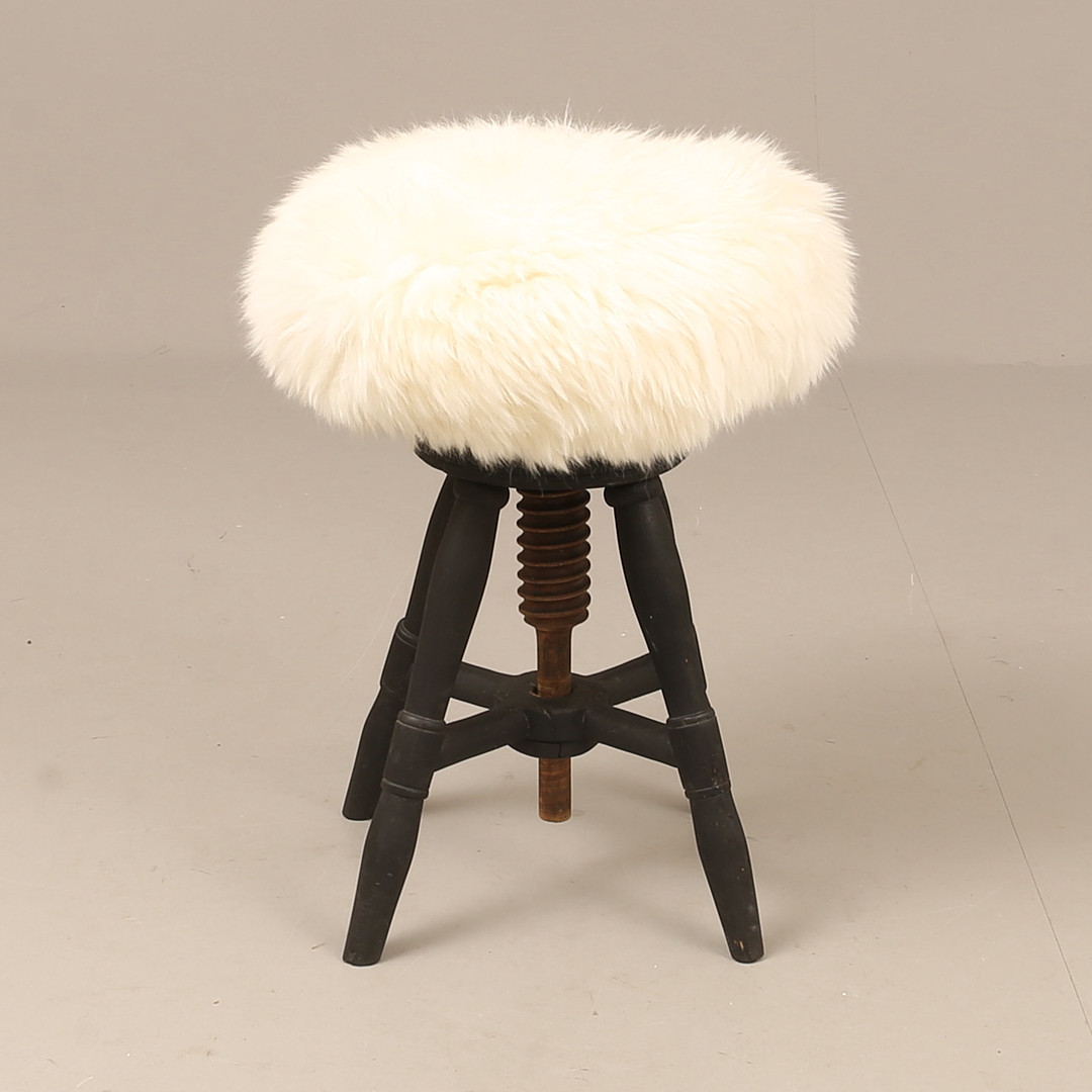 2428538. Hocker, Holz mit Schaffell.