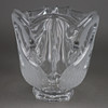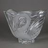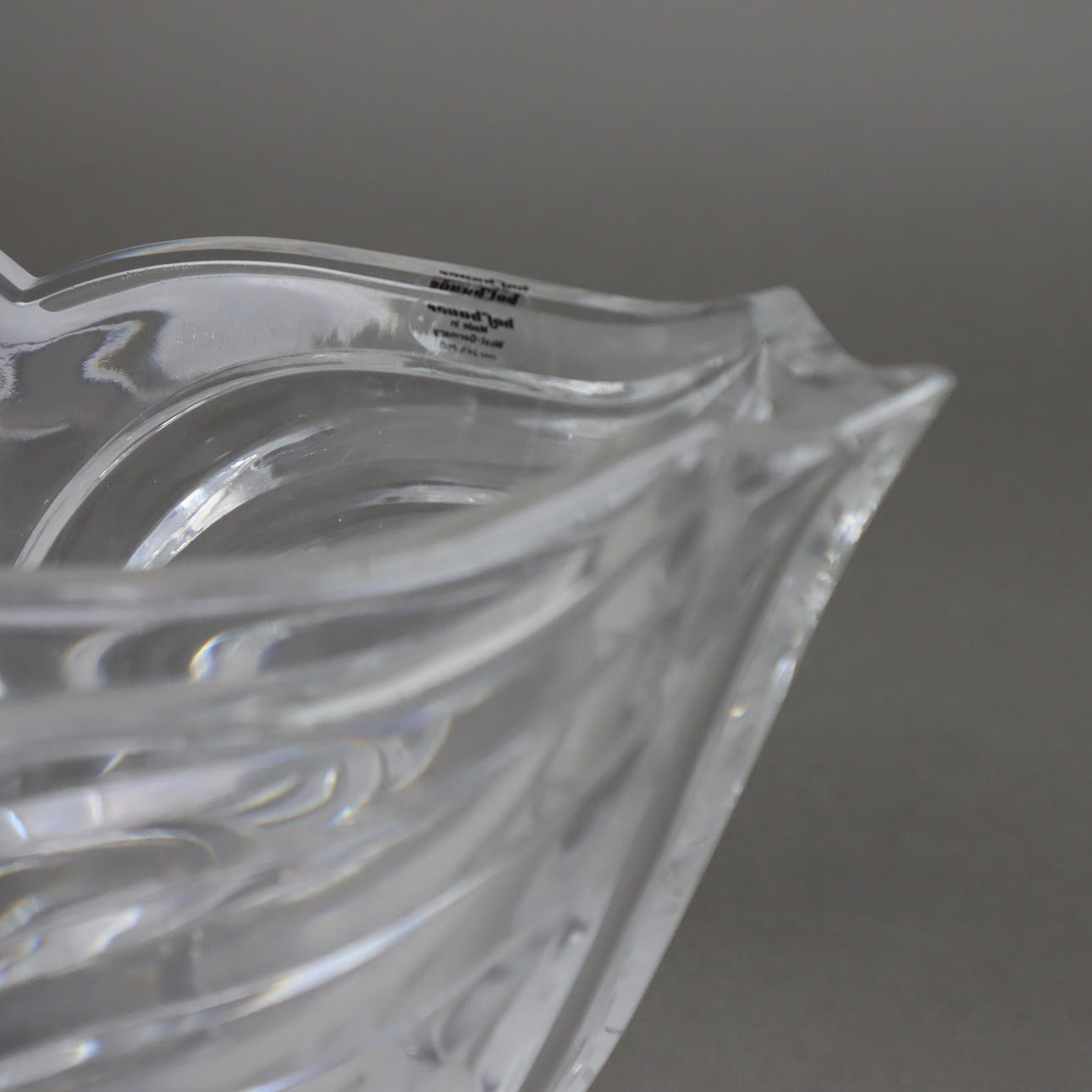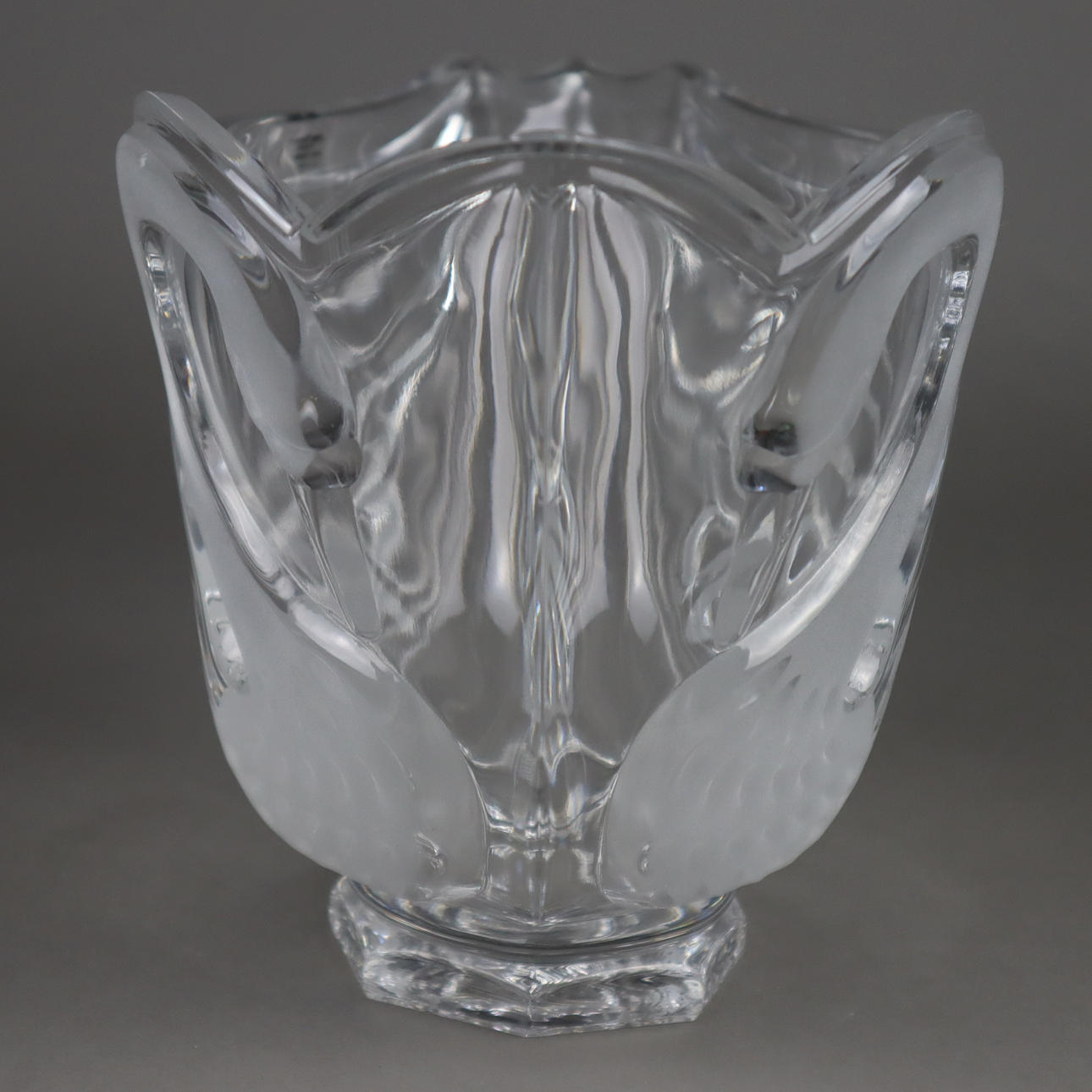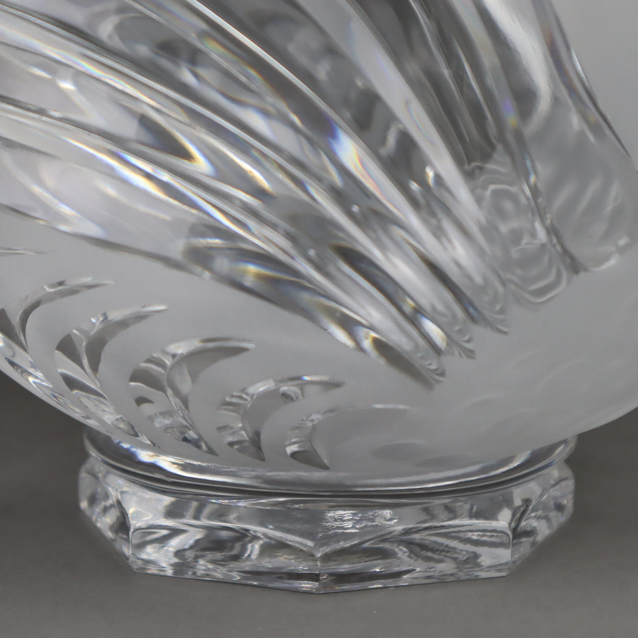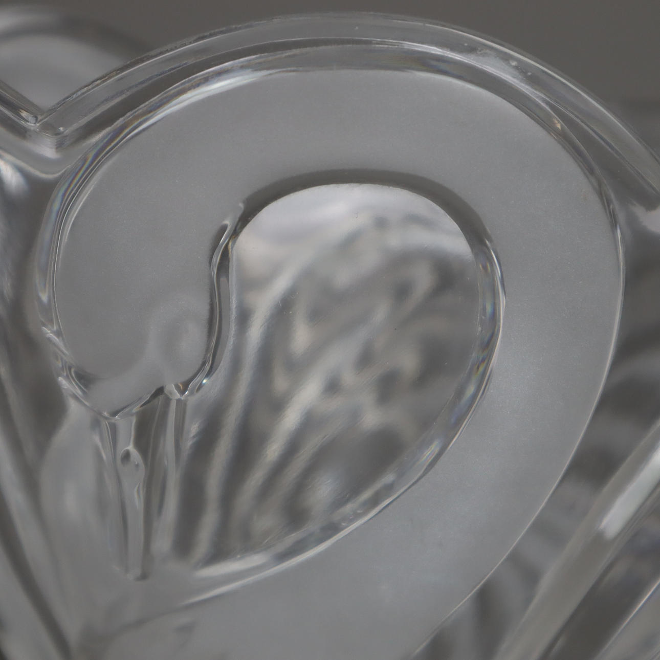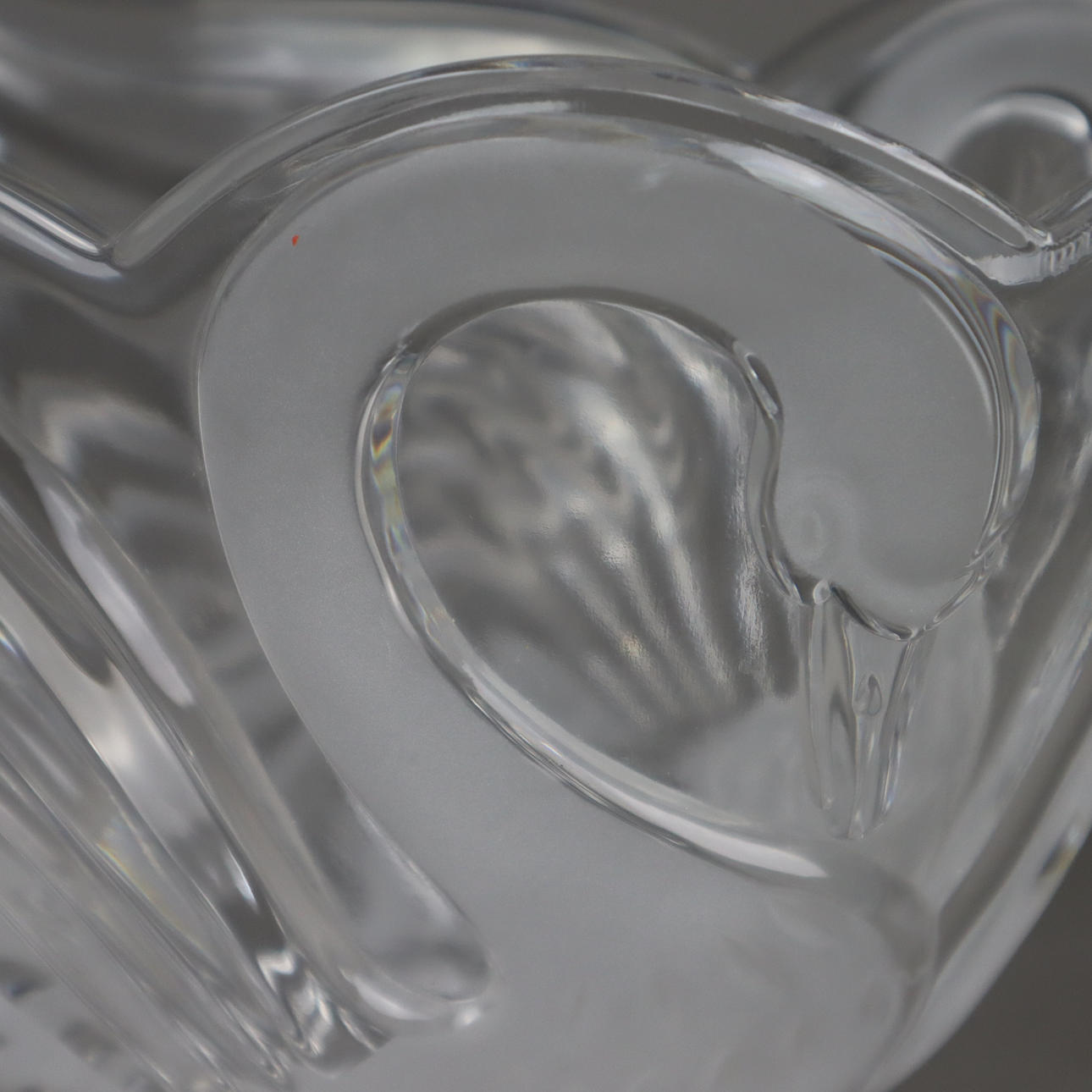 schweres farbloses Kristallglas, teils mattiert, beidseitiger Schwan-Dekor, HxB:ca.17x26cm. mit Hersteller-Etikett.