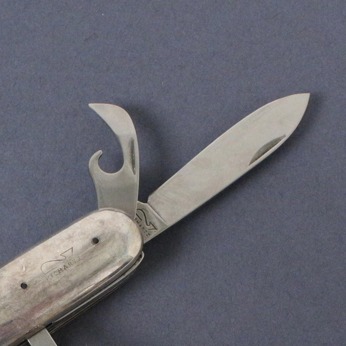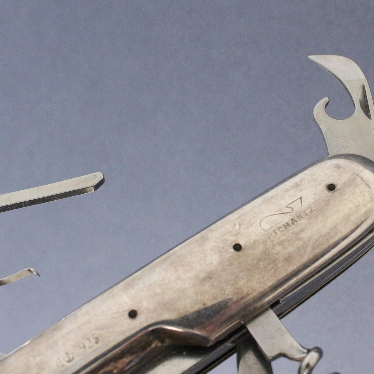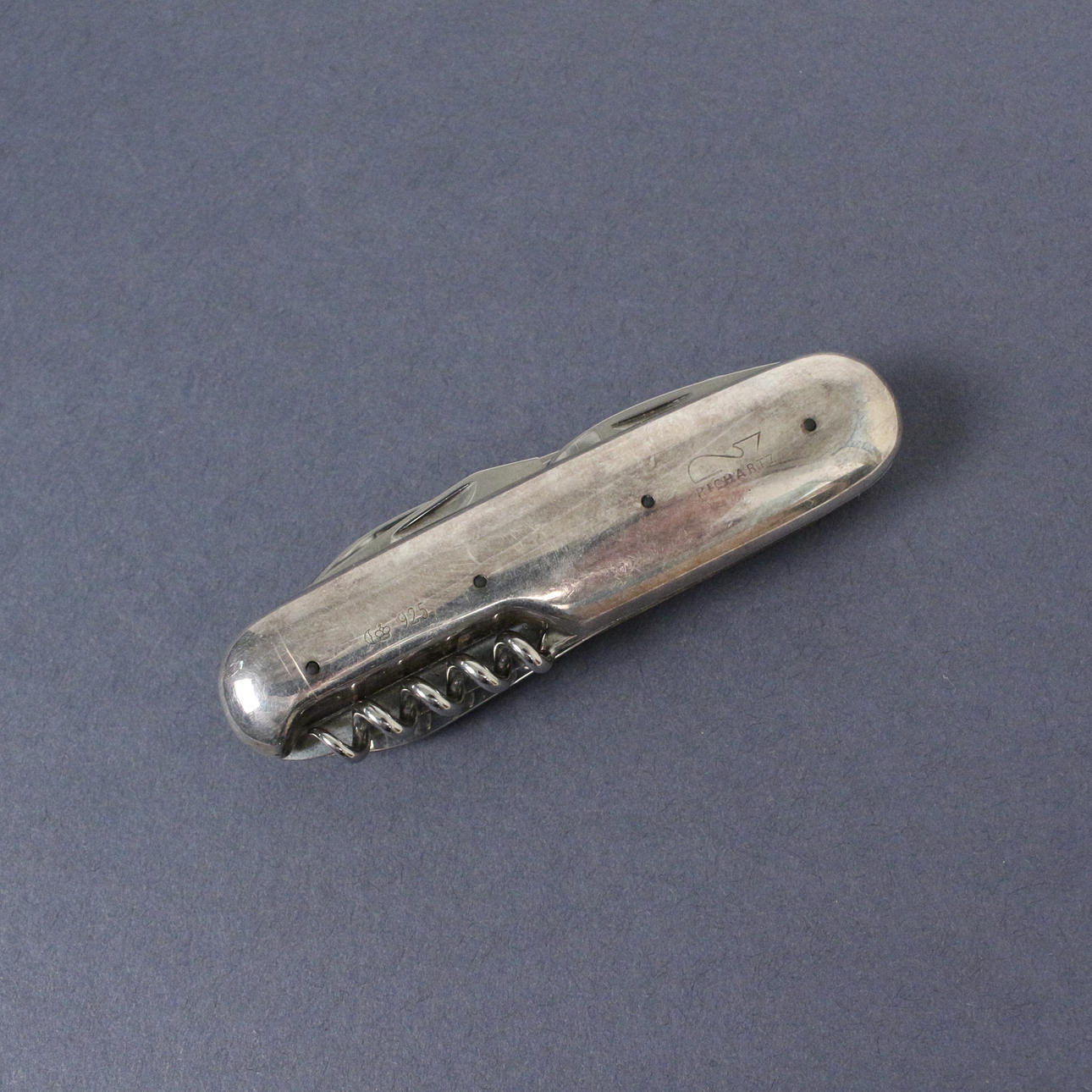 Richartz, Taschenmesser, 925er Sterling-Silber mit 5 Funktionen, Heftlänge: 9 cm, Dicke: 1,7 cm, Gewicht ca.: 90 Gramm.