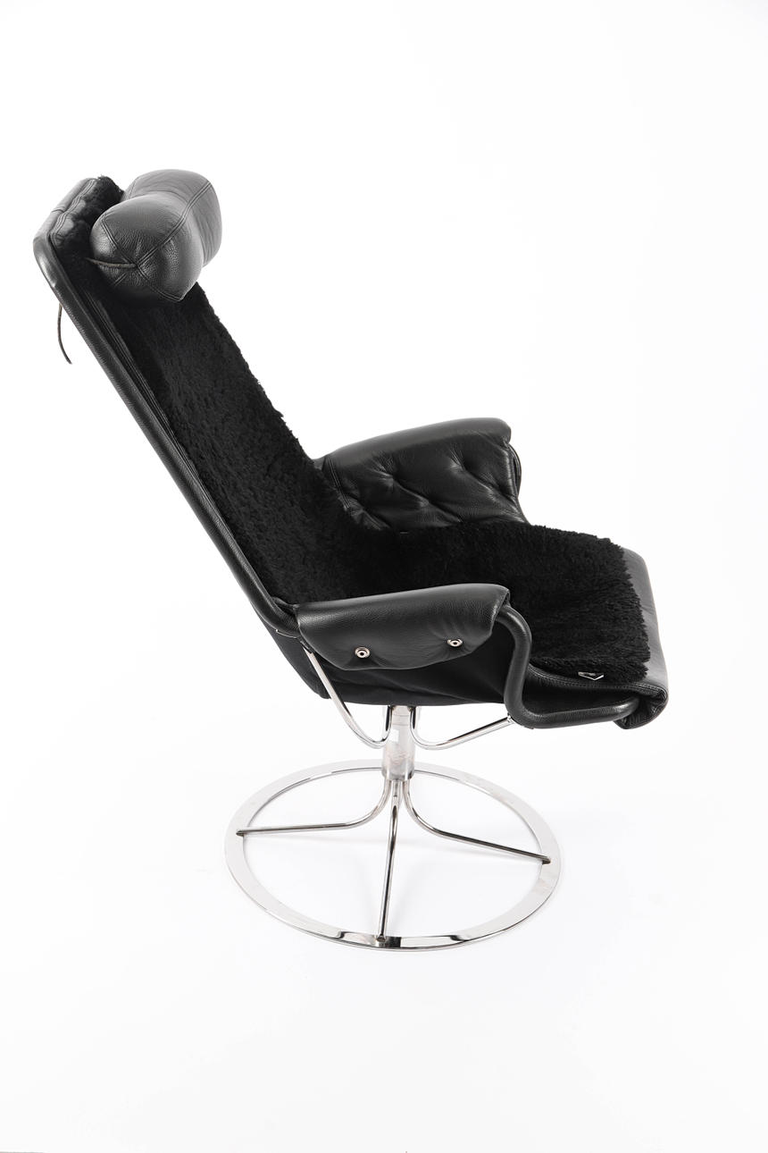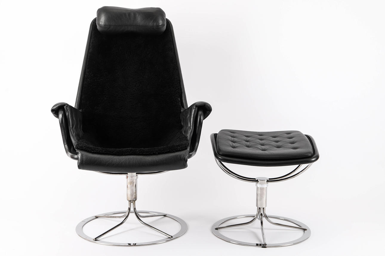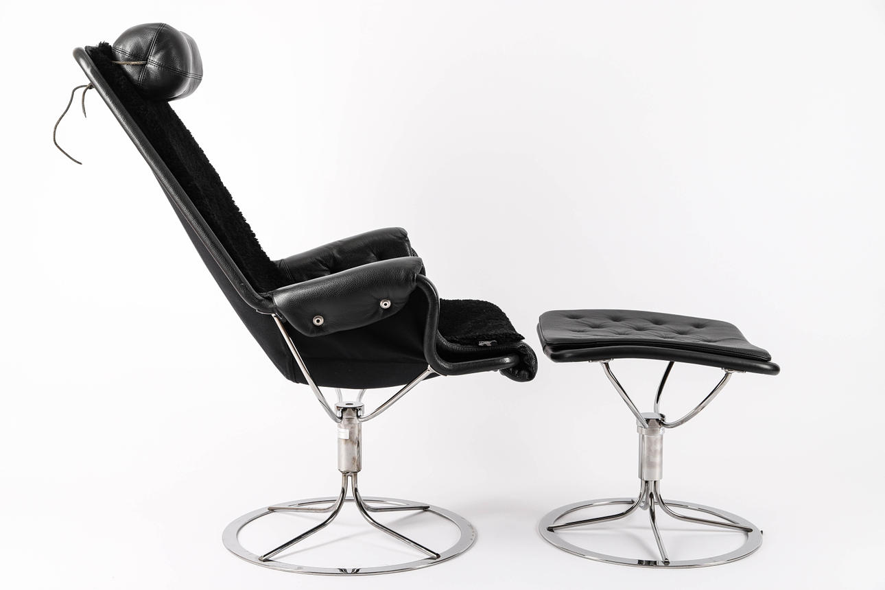 2433536. BRUNO MATHSSON. "Jetson" mit Hocker und Lammfellbezug, DUX.