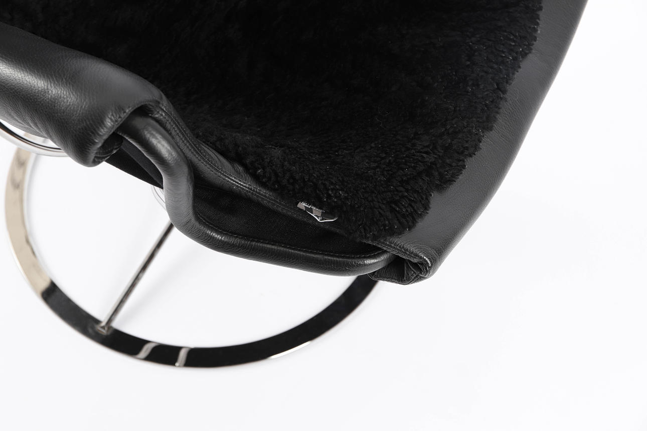 BRUNO MATHSSON. "Jetson" mit Hocker und Lammfellbezug, DUX.