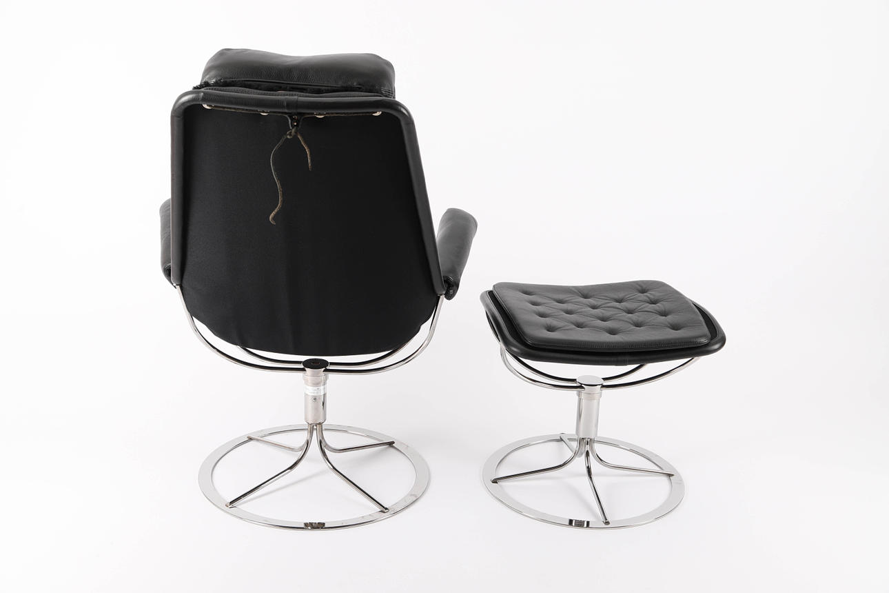 Passender Fußhocker, gekennzeichnet mit Bruno Mathsson International.