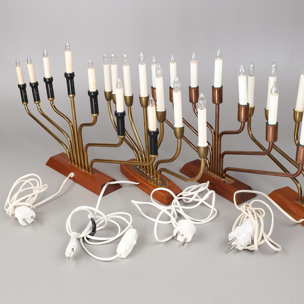 2436734. WEIHNACHTSKERZEN, 4 Stück, Messing/Teak, Luma, GK.