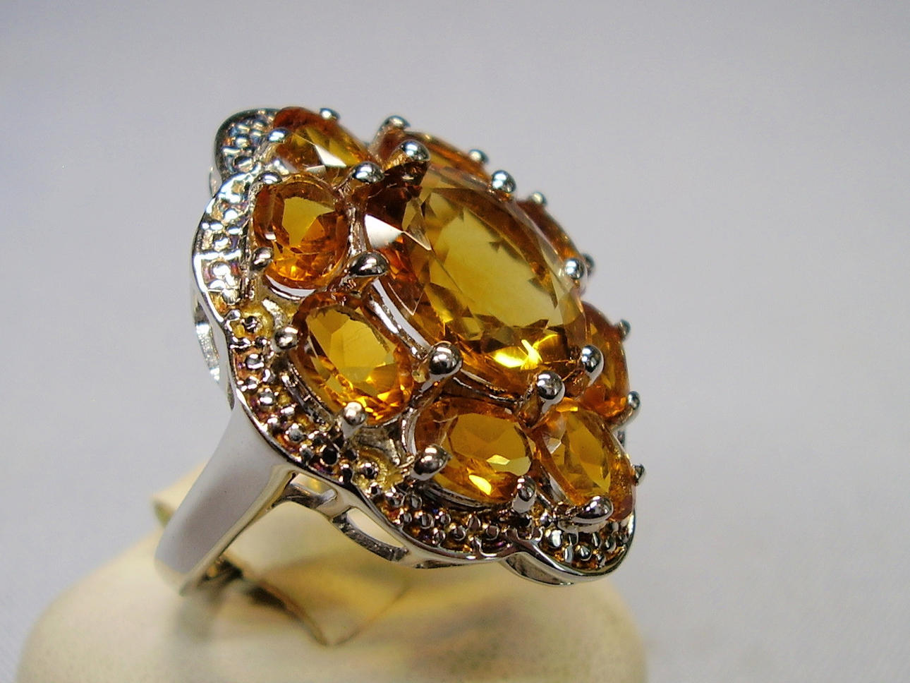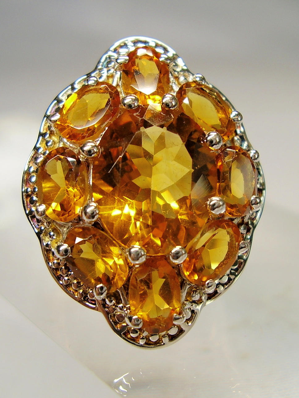 Er ist besetzt mit neun oval facettierten Madeira-Citrinen in zwei Größen.