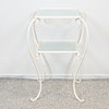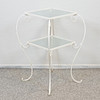 Gestell aus weiß lackiertem Schmiedeeisen. Zwei Glasscheiben. Höhe 61 cm, Breite ca. 40 cm, Größe Glasplatten 30 x 30 cm.