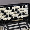 Schwarzes Akkordeon in Tasche. Länge: ca. 47 cm.