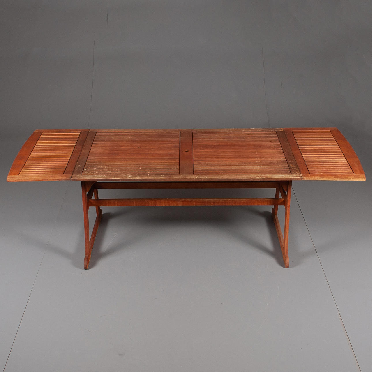 Tisch mit doppelten Einsätzen, 4 Klappstühle.
