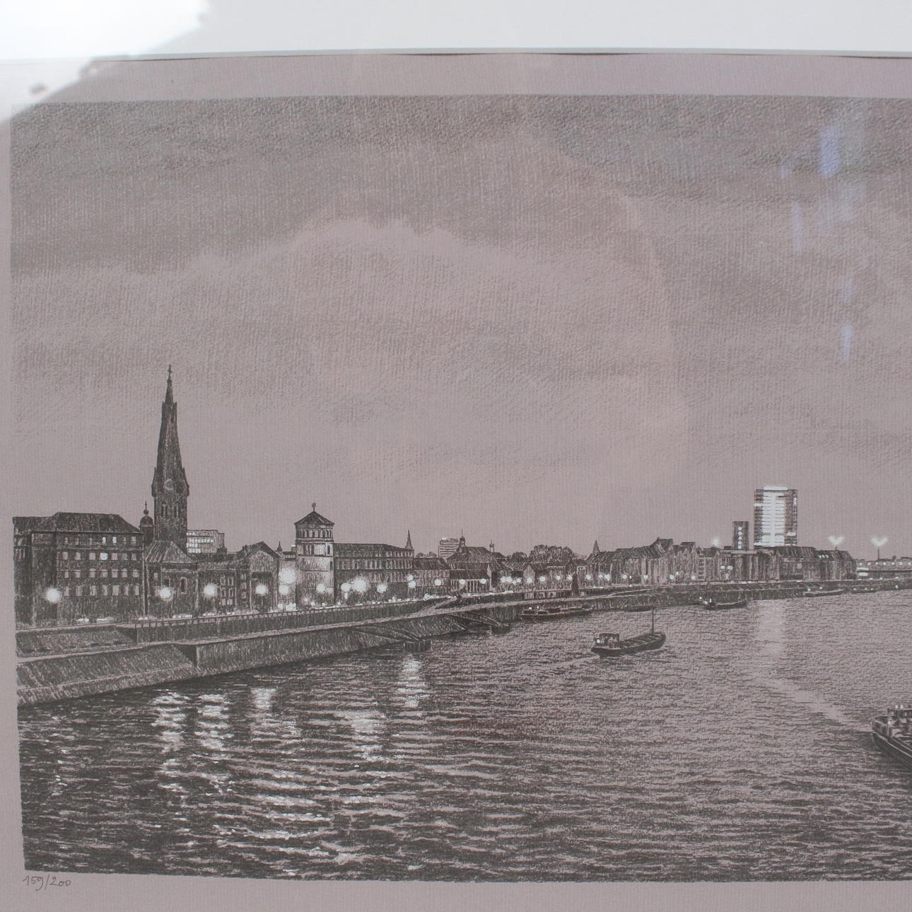 Otto Götzinger (1912-1999), 'Düsseldorf', Lithographie, signiert, gerahmt, Bildmaß: 30 x 52,5 cm, Rahmenmaß: 50,5 x 73 x 2 cm.