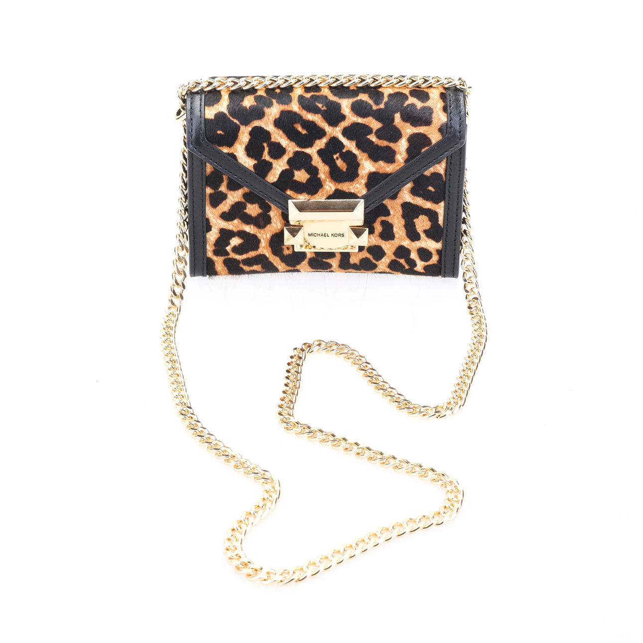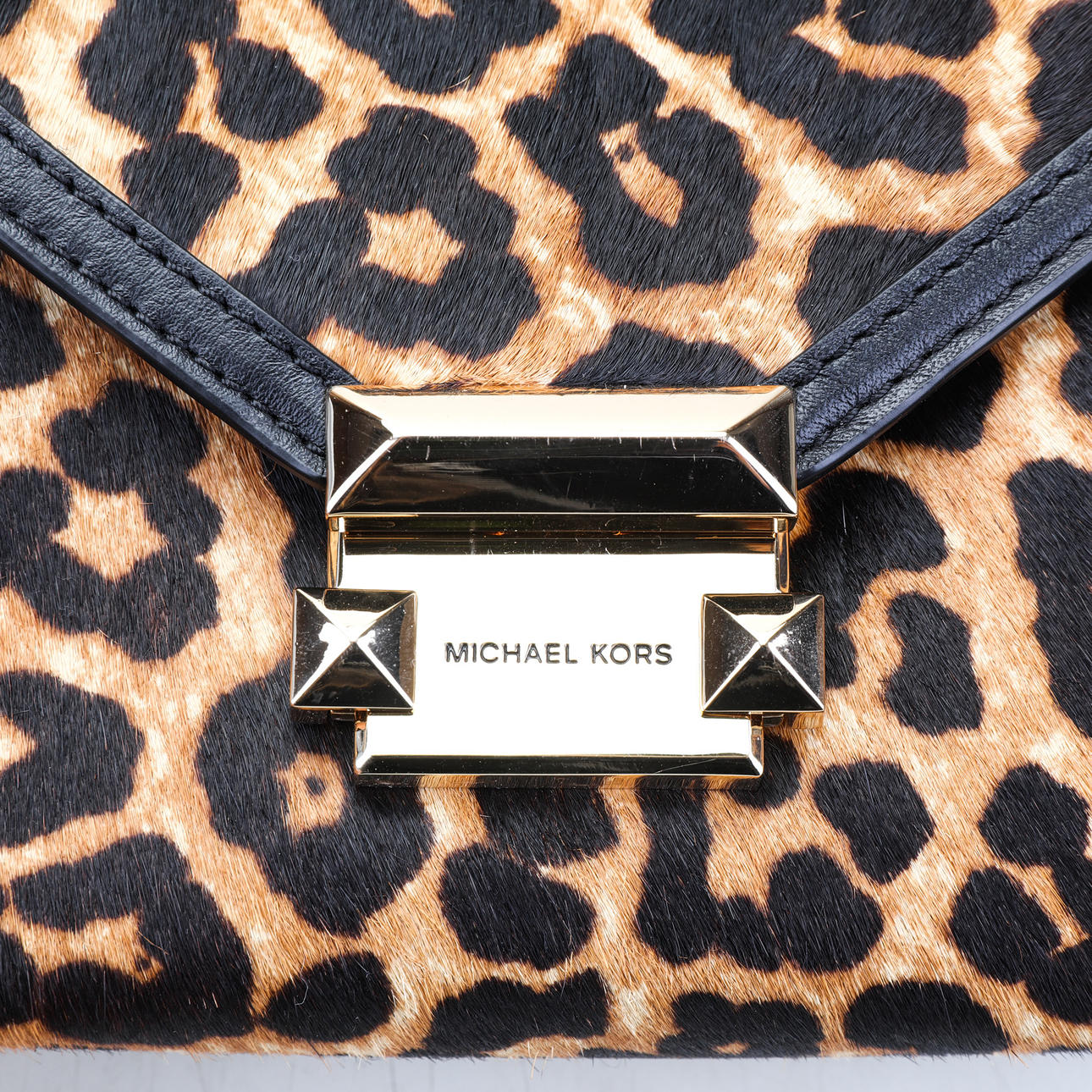 2472491. TASCHE, Michael Kors, Ledertasche, schwarz/Leopard/Gold.