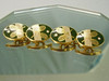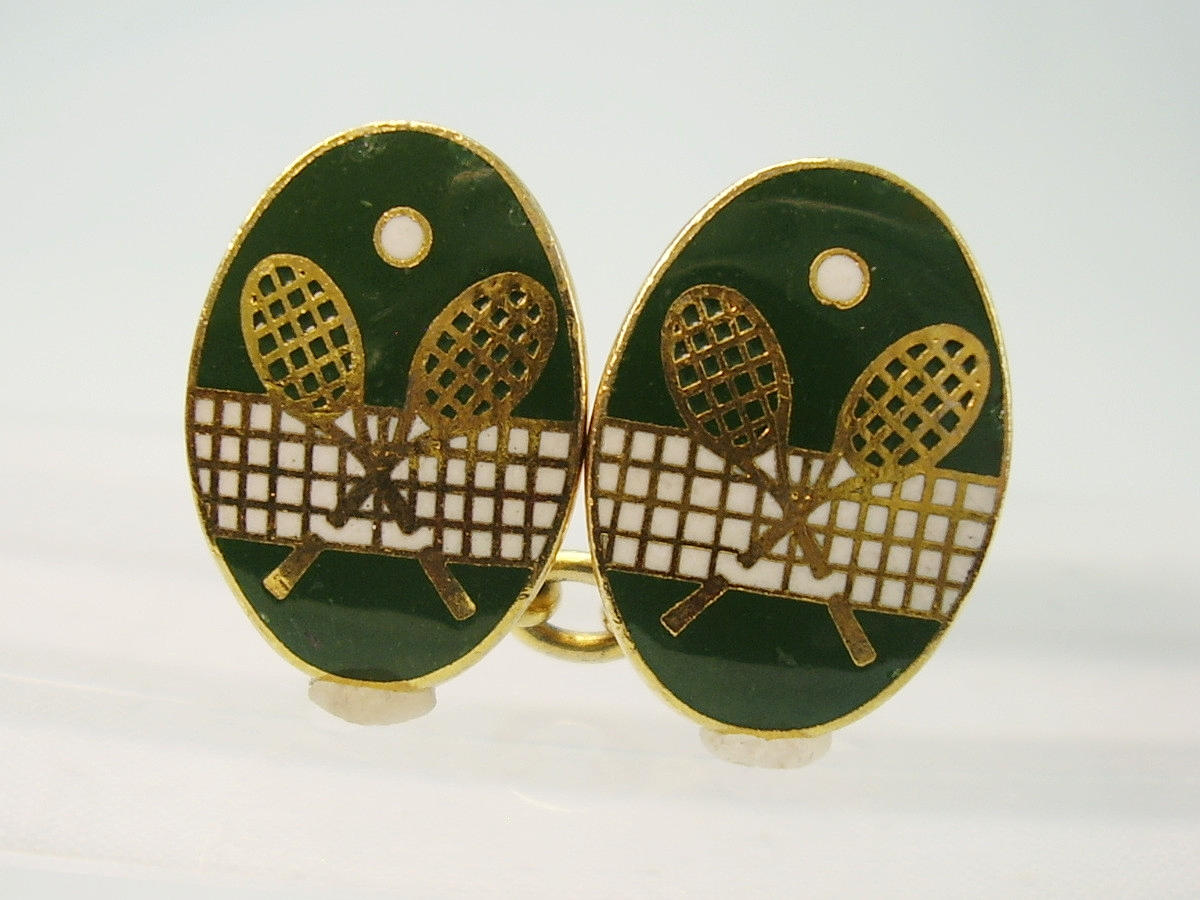 Ovale,emaillierte Schauplatten mit gold-akzentuiertem Netz, Ball und Tennis-Schlägern.