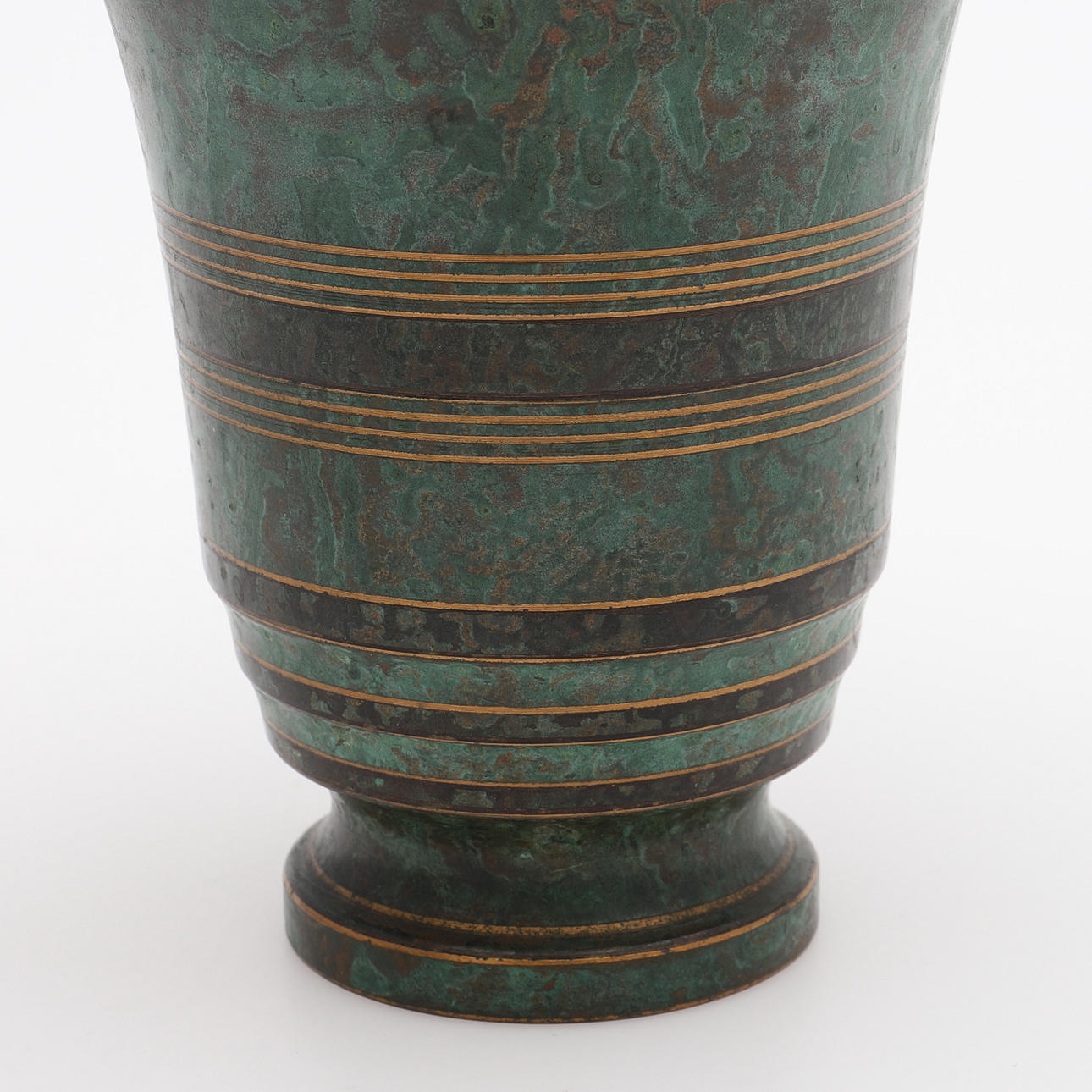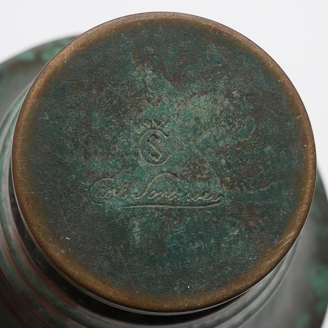 Bronze grün patiniert, Unterseite gemarkt, Höhe ca. 16,5 cm.