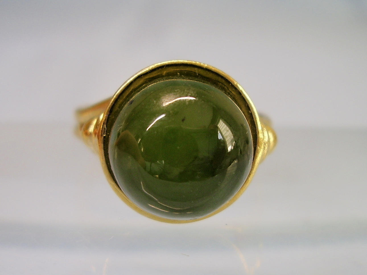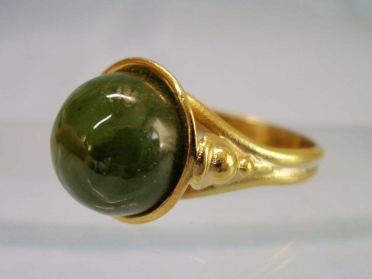 Er ist besetzt mit einem Jade-Cabochon von 6 ct kanadischer Jade,