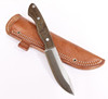 Modell: Kalahari, Gesamtlänge ca. 23,5 cm, Vollerl, Schaft aus grünem Micarta, Lederscheide, A2 Stahl.