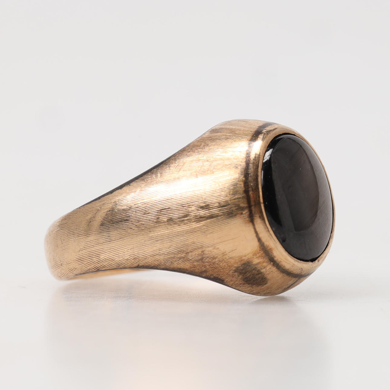 RING aus 14 K Gold, besetzt mit Sternsaphir.