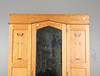 Ein eintüriger Kleiderschrank aus heller Eiche mit abgeschrägten Kanten an der Tür und symmetrisch dekoriert mit einem eingelegten Tulpendesign. Stand auf einer einzelnen Schubladenbasis mit Messingbefestigungen. Höhe 195 cm x Länge 113 cm x Tiefe 48 cm.