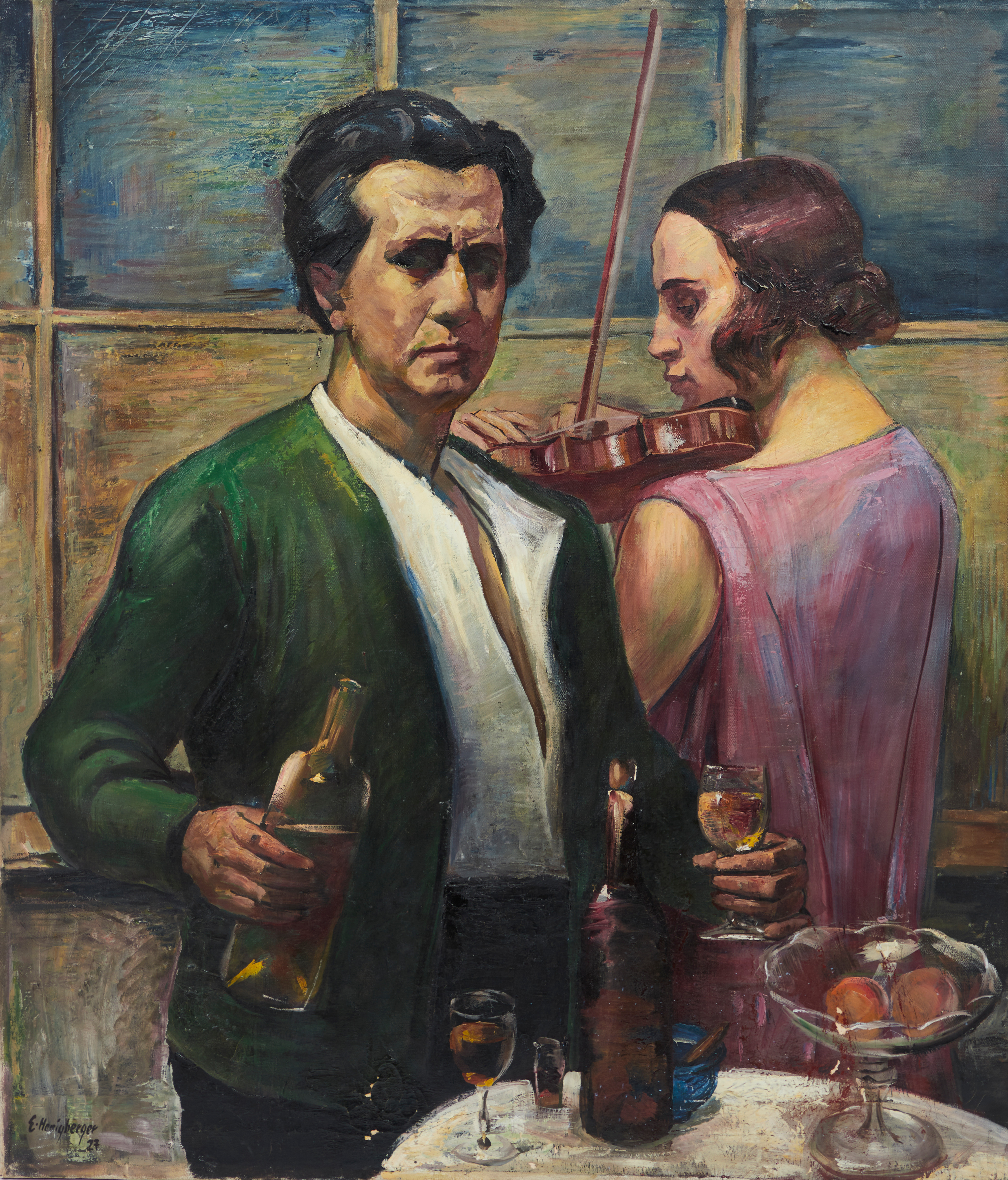 2494378. ERNST HONIGBERGER. Gemälde, 'Selbstbildnis' mit Violine, 1927.