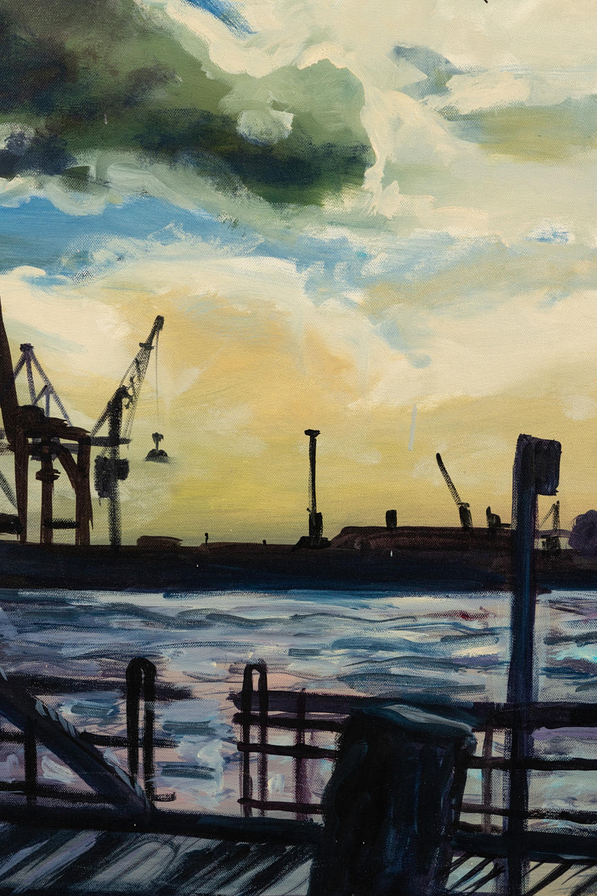 Peter Grochmann (1956-2009), Hafenwolken, Öl auf Leinwand, 2008, signiert, rückseitig datiert, ca. 100 x 80 cm.
