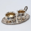 Tablett mit Zuckerdose und Sahnekännchen. Tablettlänge 20,7 cm.
