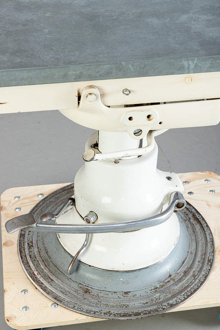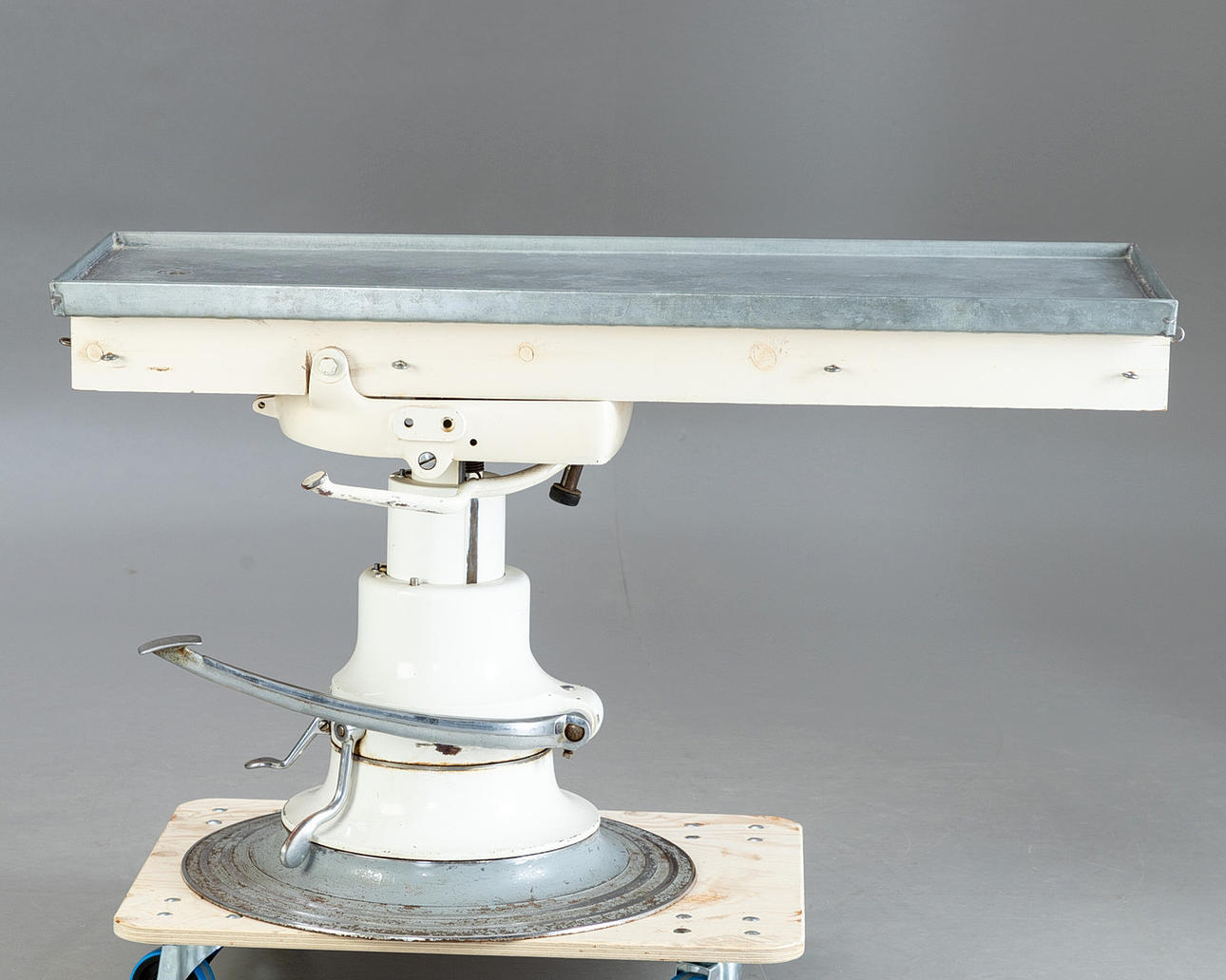 Behandlungstisch / Hubtisch/ Op-Tisch für Kleintiere. Schwere Ausführung. Höhenverstellbar. Tischplatte aus Stahl mit hochgezogener Kante und Ablauf, schwenkbar.