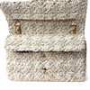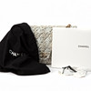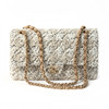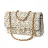 Tasche aus beigefarbenem, gestepptem Tweed mit Details aus vergoldetem Metall. Mit beigem Leder gefüttert. Fünf Innentaschen, eine davon mit Reißverschluss. Ein Außenfach. Nummeriert (Baujahr 2017).
