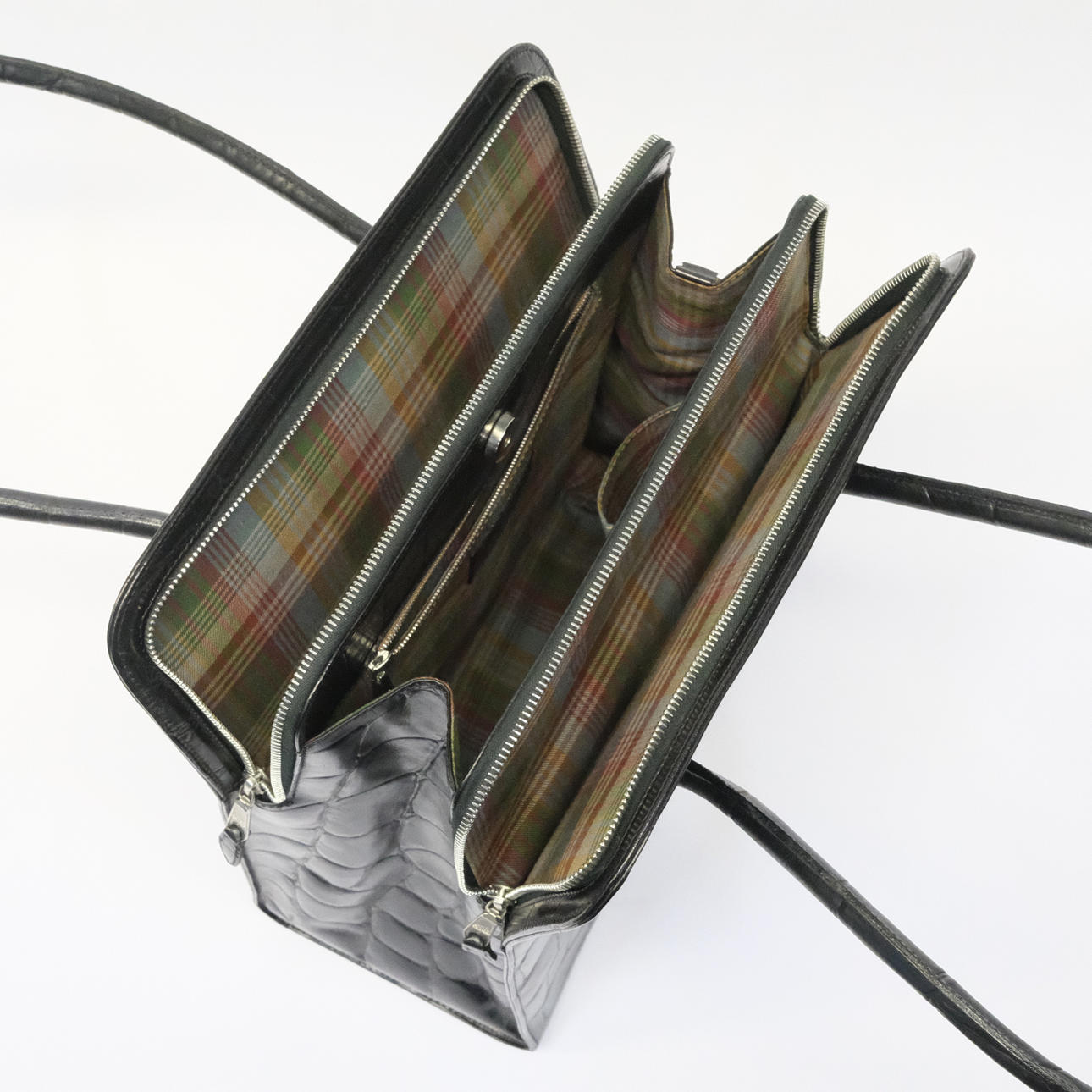 Zwei Fächer mit Reißverschlüssen, Mittelfach mit Magnetverschluss, Innenfach mit Reißverschluss und ein Handyfach.