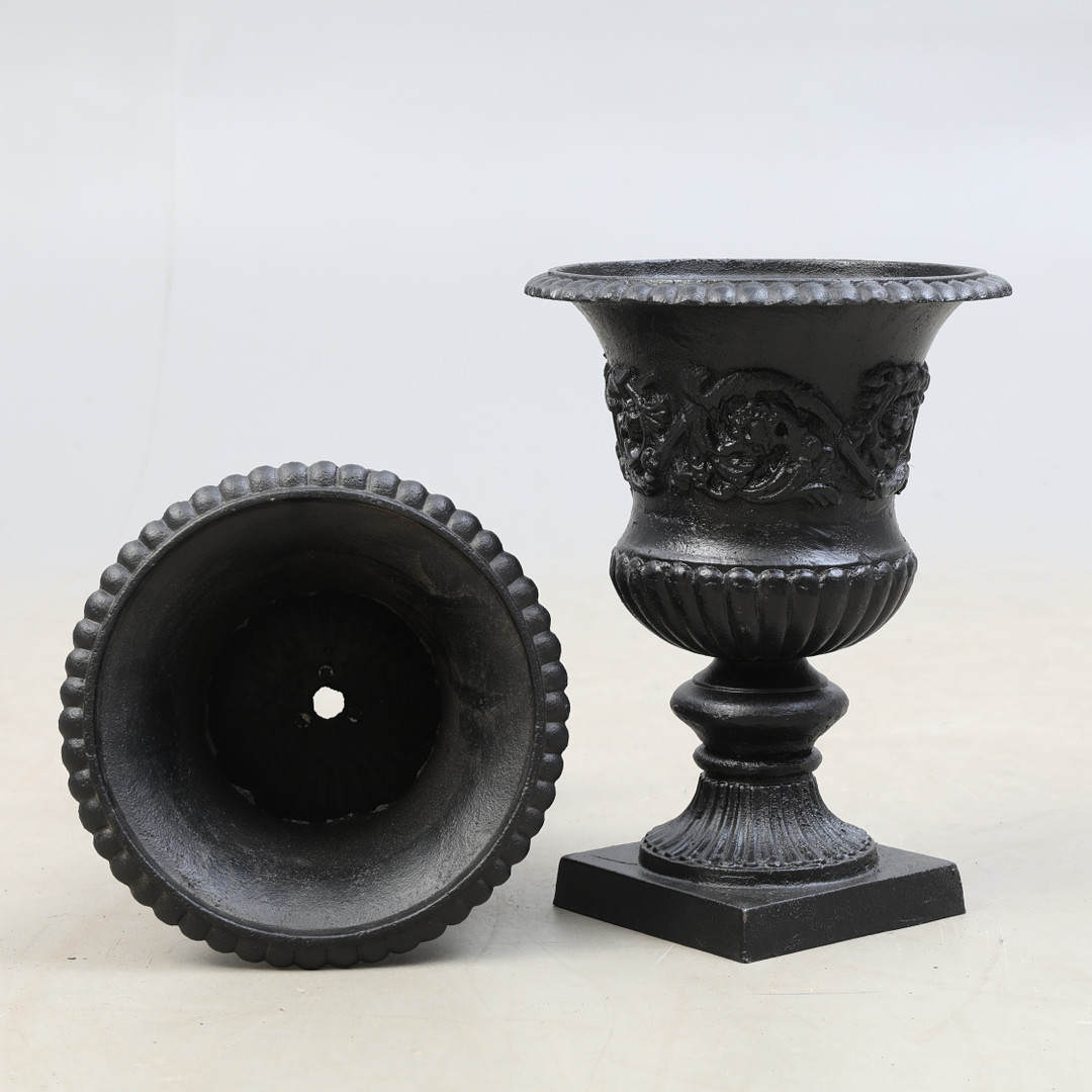 2503986. BLUMENURNE DEKOR, GUSSEISEN, 2 Teile.