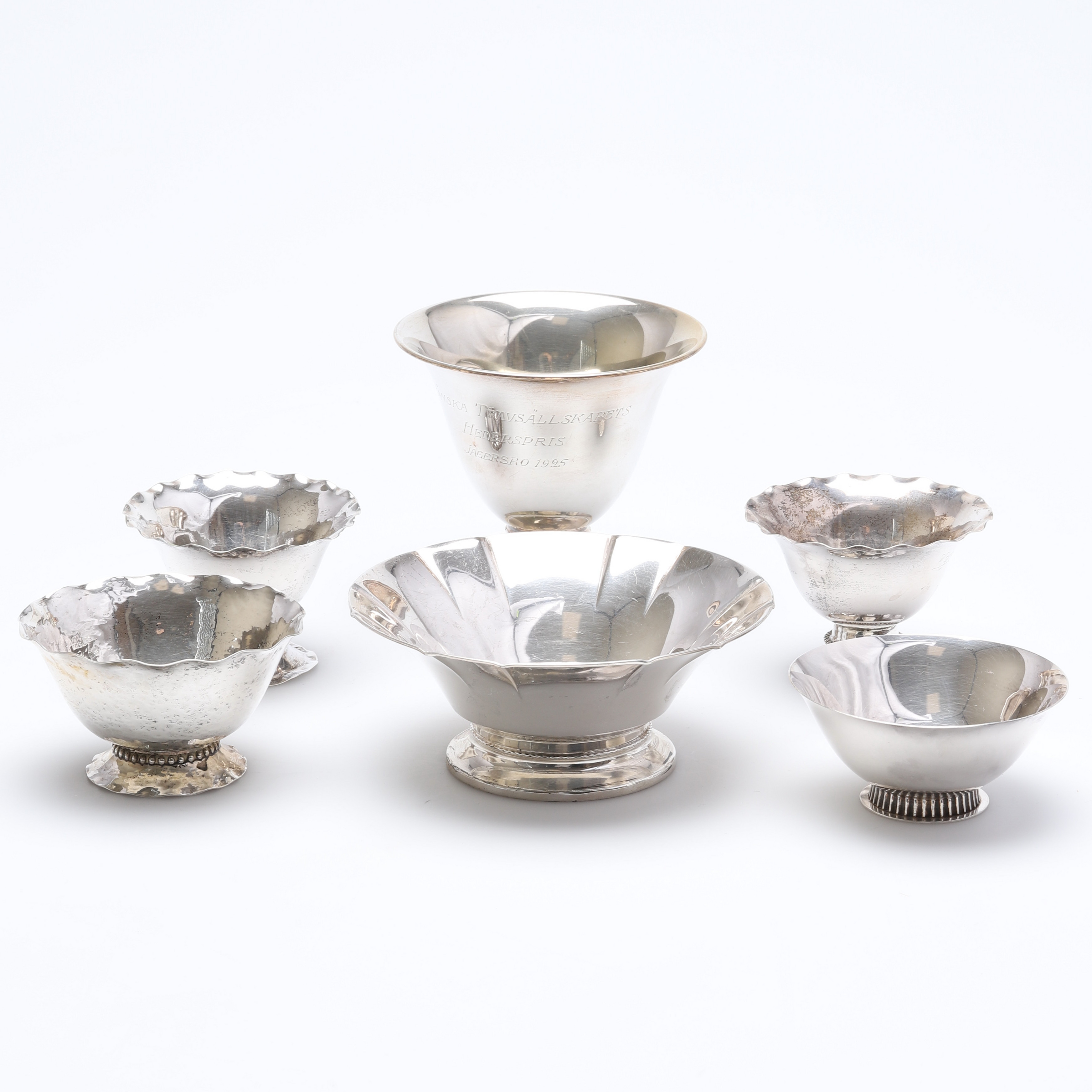 2508700. SAMMLUNG SILBEROBJEKTE, 6 Stück, Gewicht 358 Gramm.