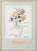 PABLO PICASSO. "Hand mit Blumen". Gerahmtes Poster, USA, 1981.
