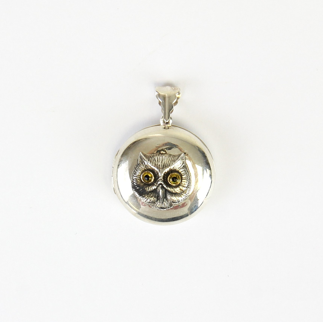 2513459. SILBERNER MEDAILLON-ANHÄNGER MIT DEM GESICHT EINER EULE.