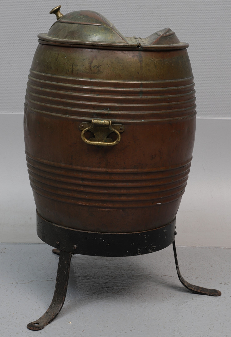 2515211. KUPFERFASS, Deckel und Beinständer, 19. Jahrhundert.