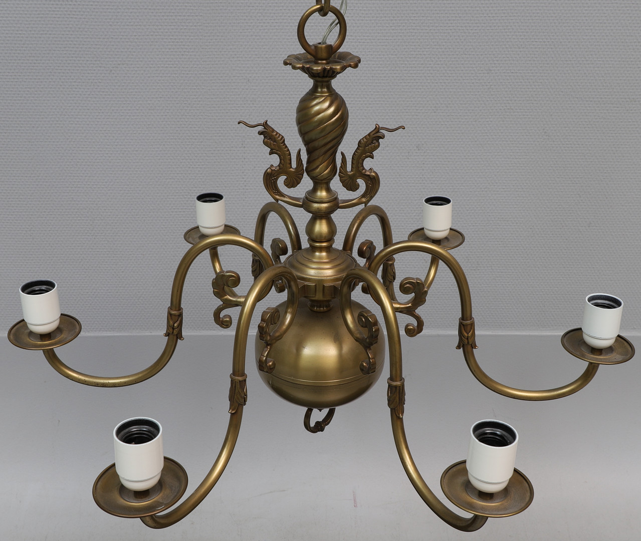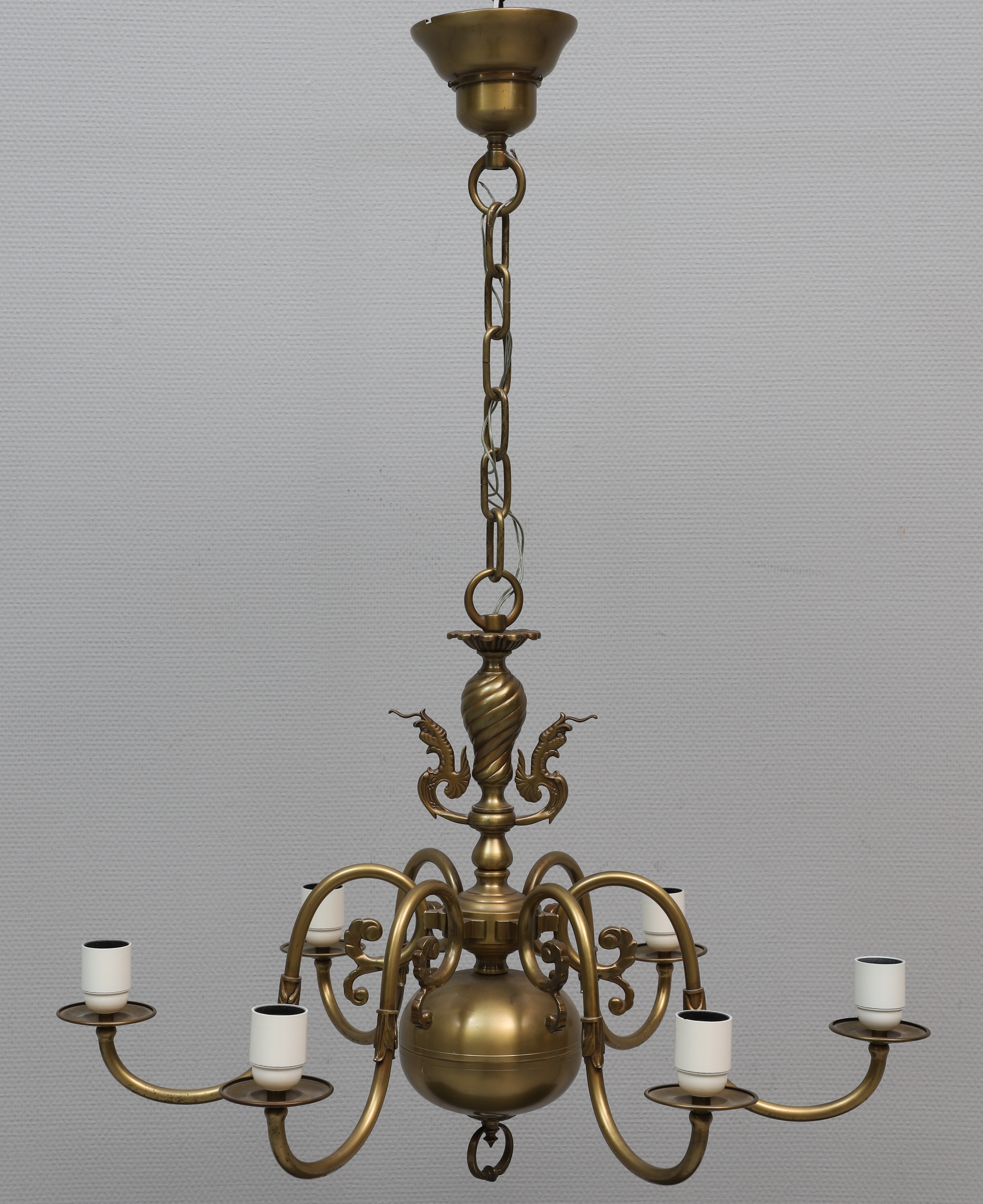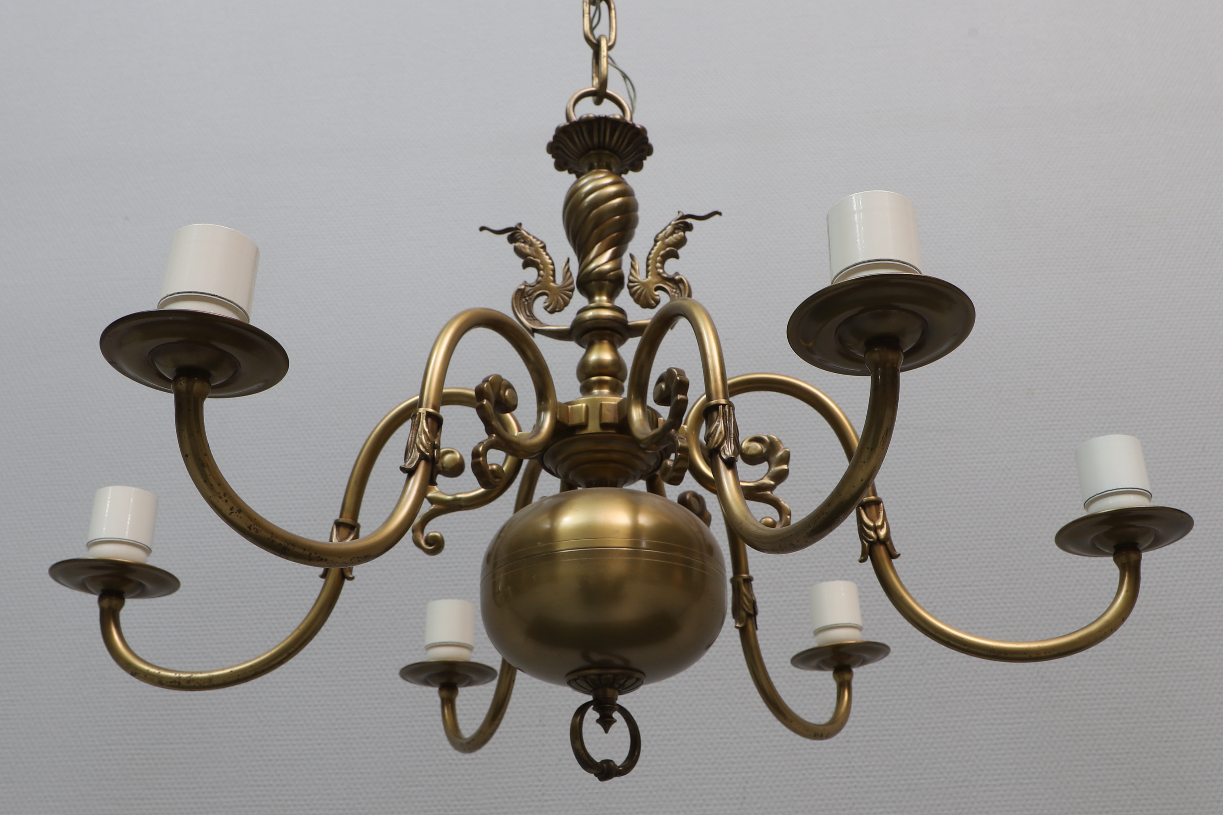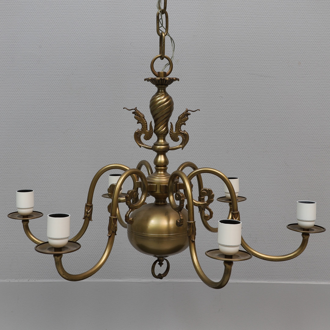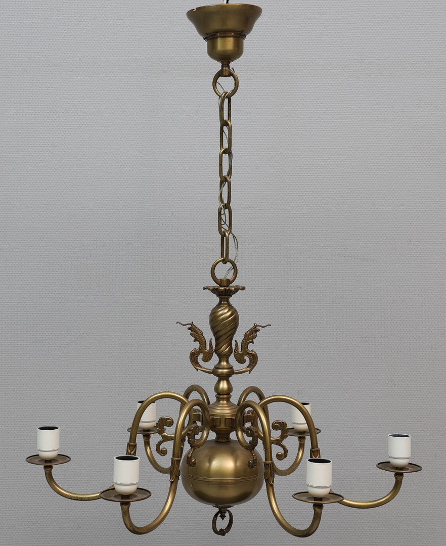 2515253. DECKENKRONE, 6-armig, Messing, 1900er Jahre.