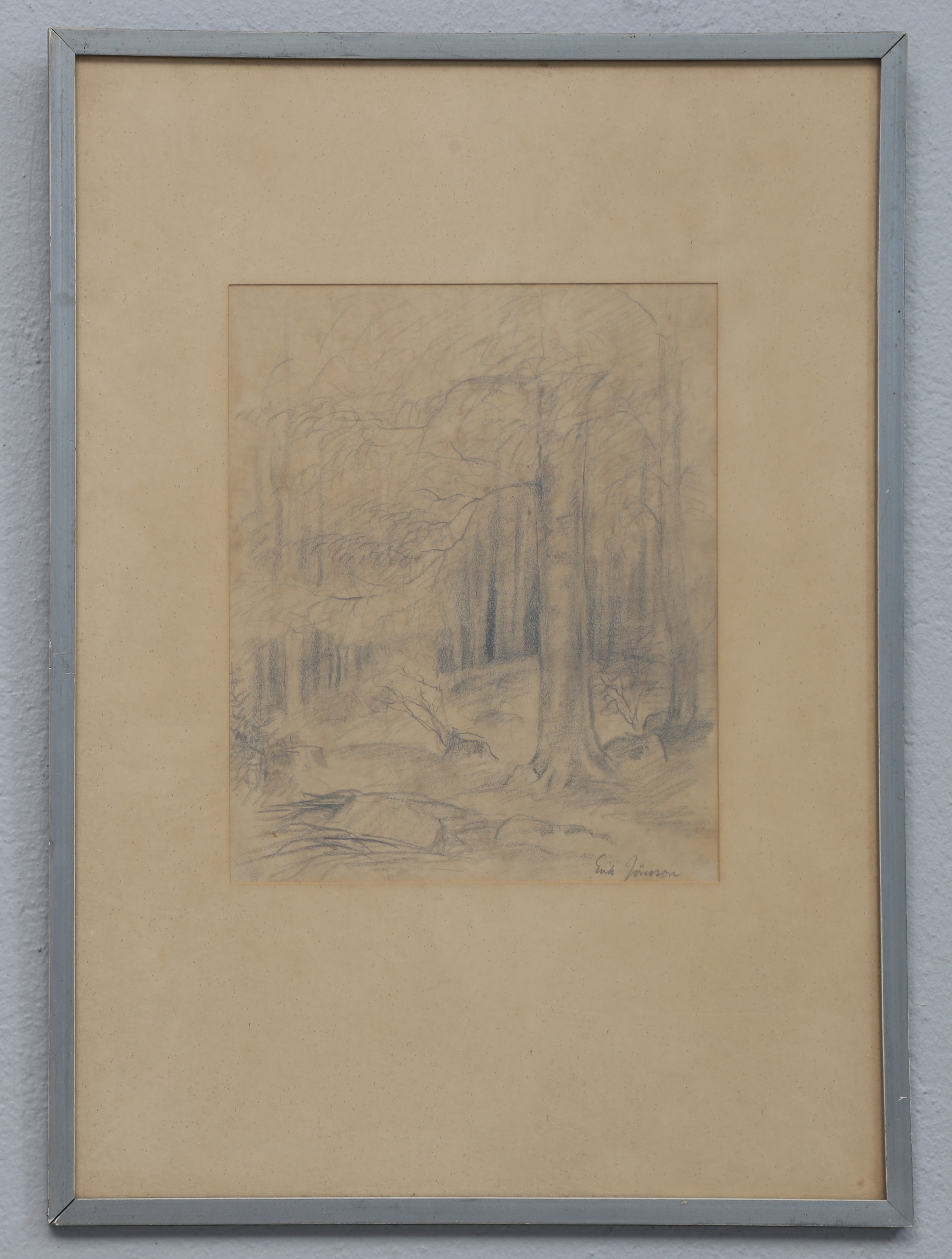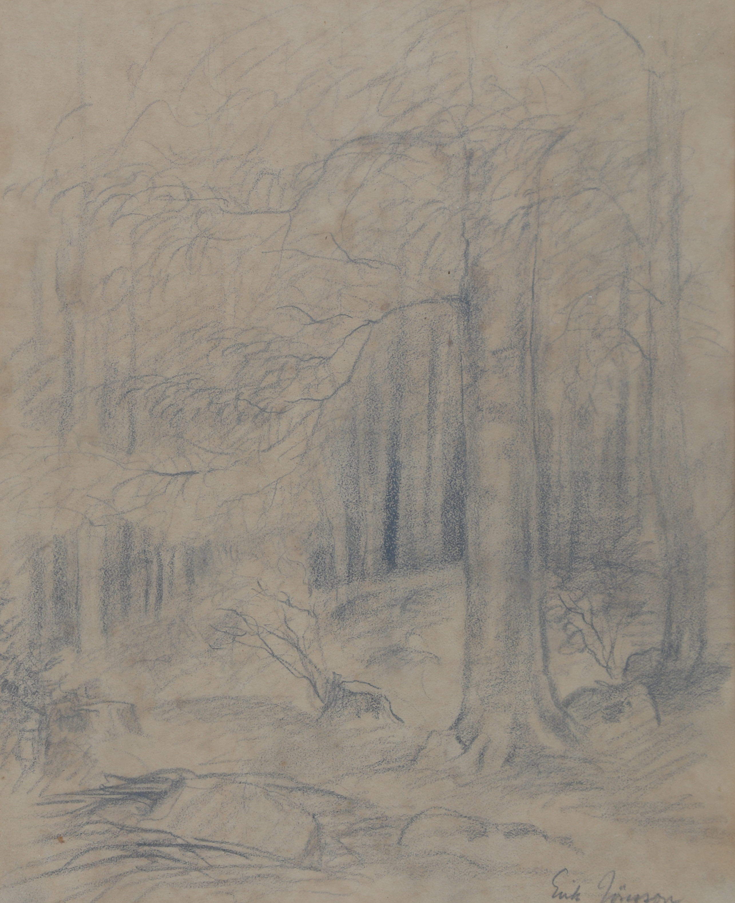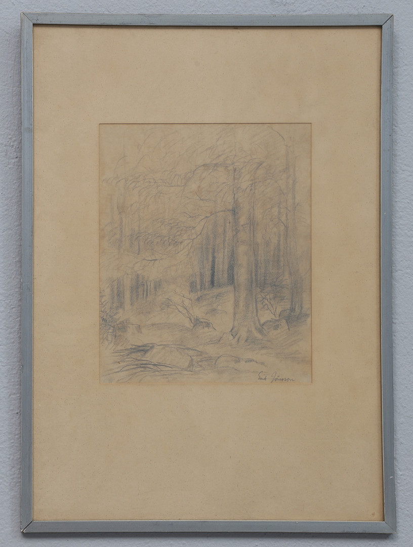2516316. ERIK JÖNSSON. Bleistiftzeichnung, Wald, signiert.